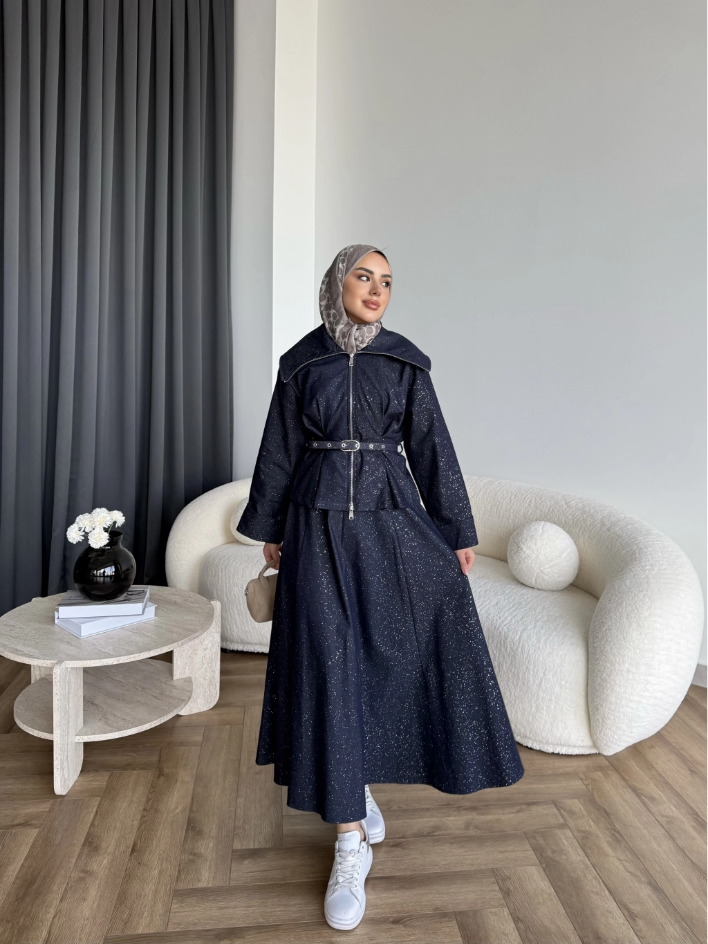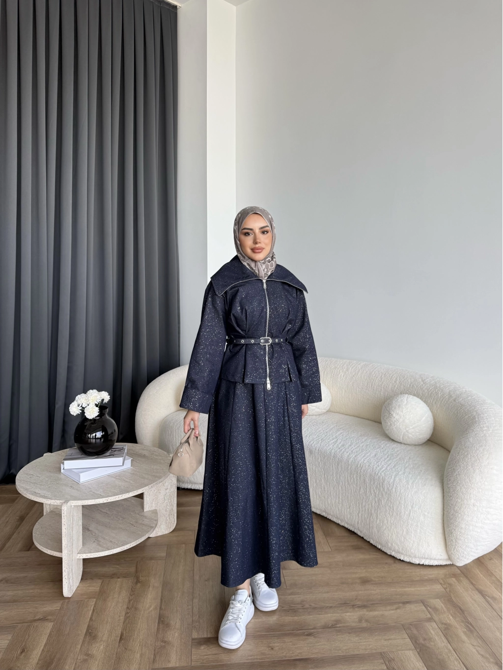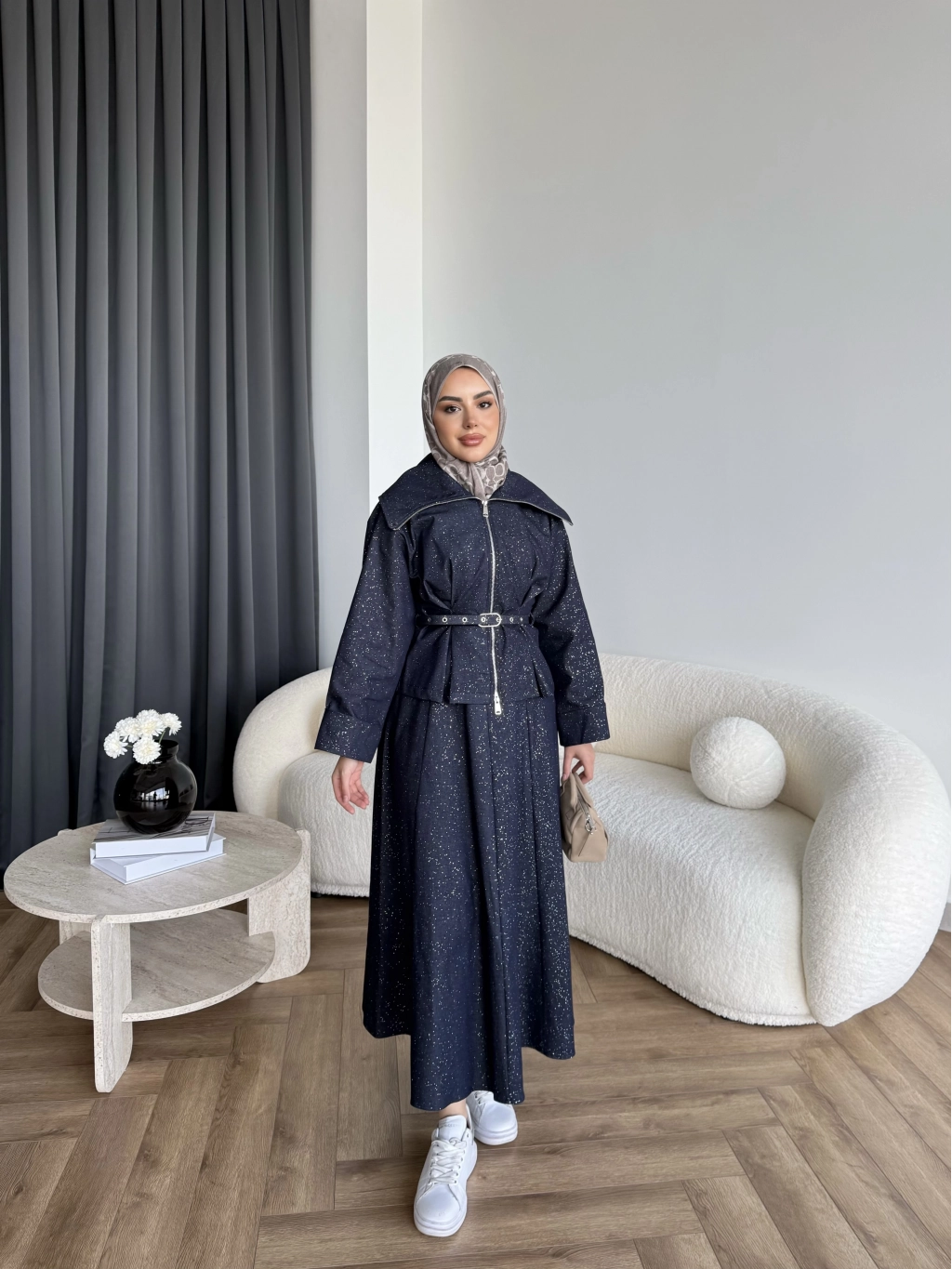 Tb - Işıltı Etekli Kot Takım - Lacivert