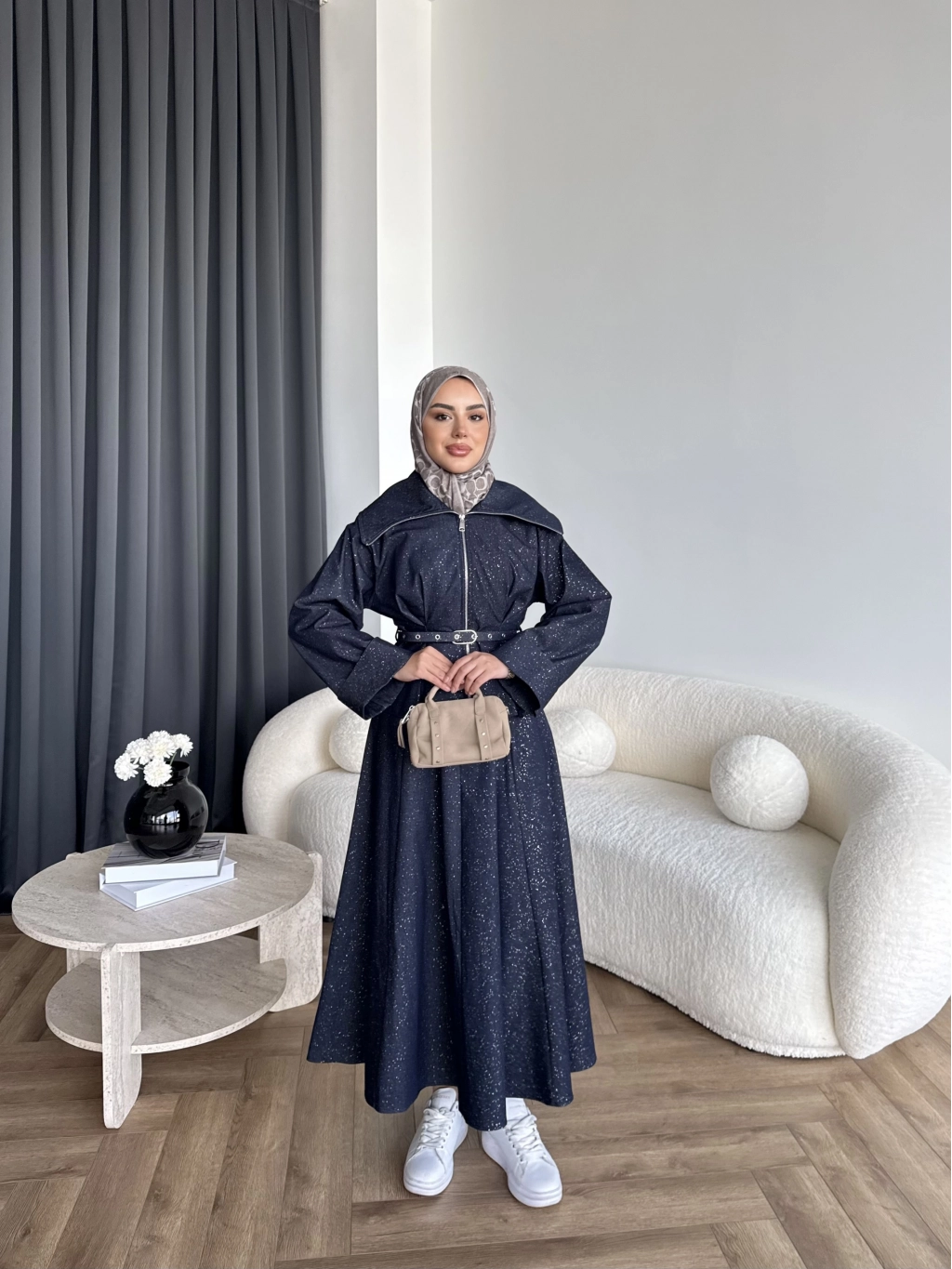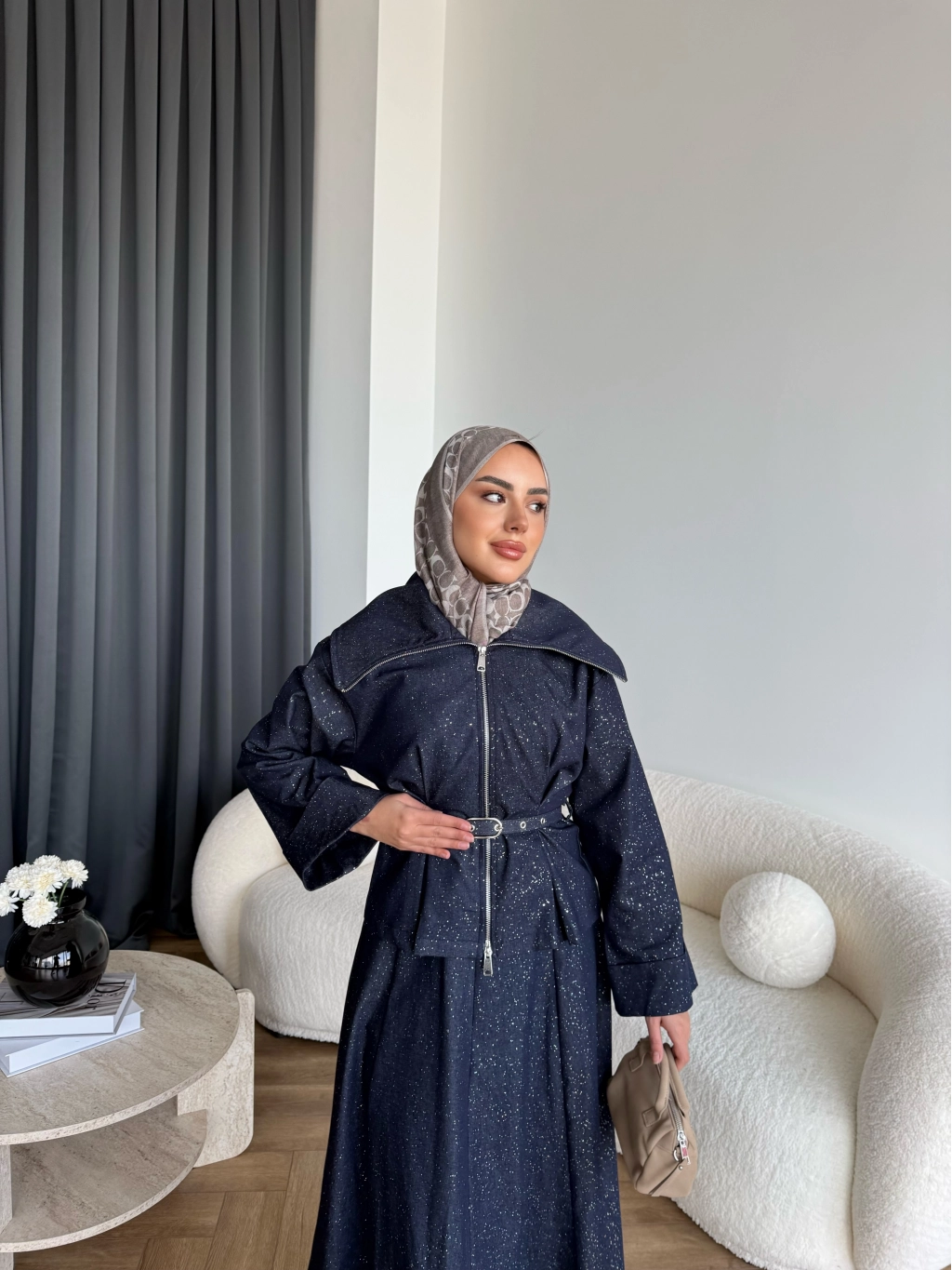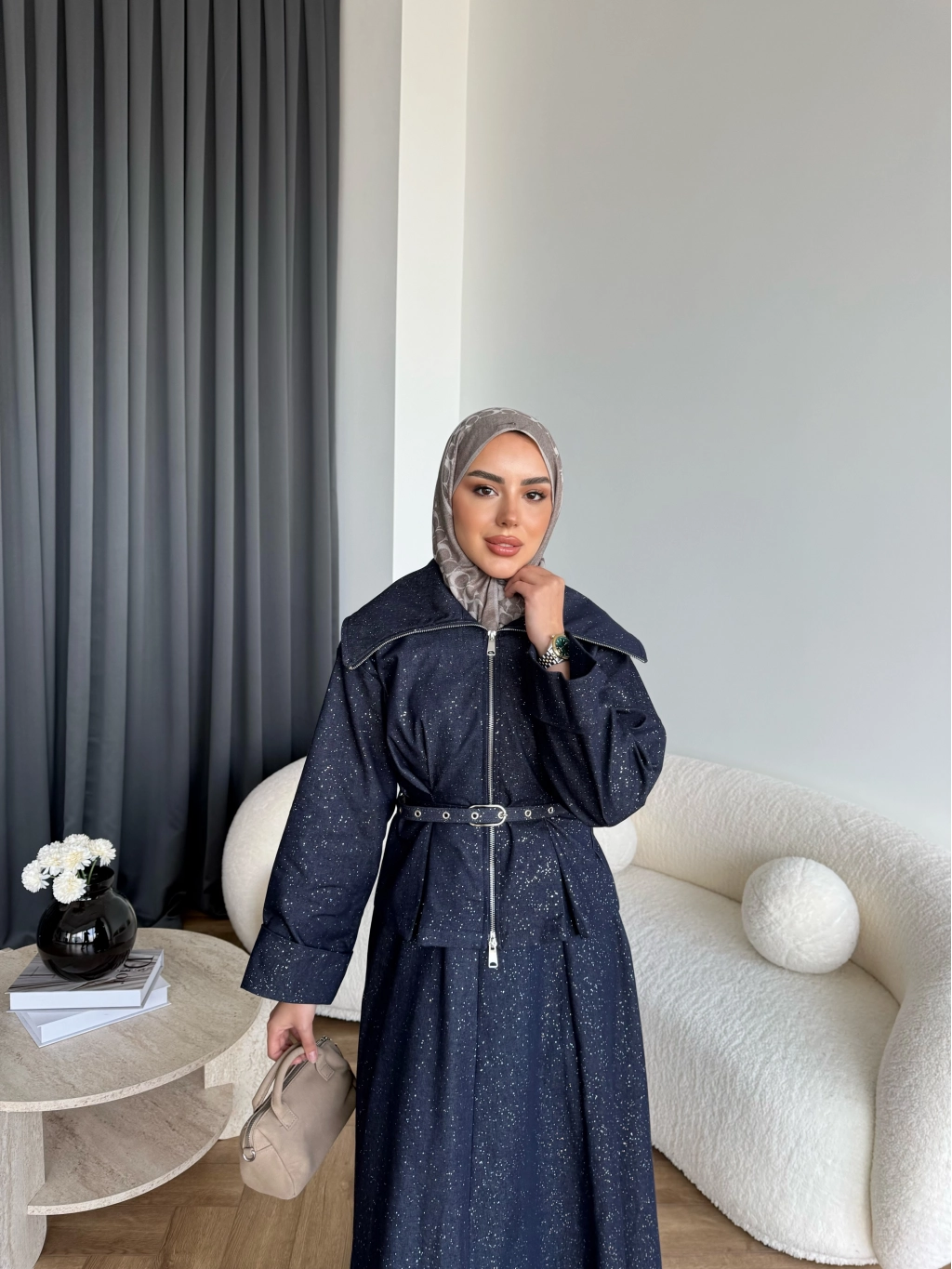 Tb - Işıltı Etekli Kot Takım - Lacivert