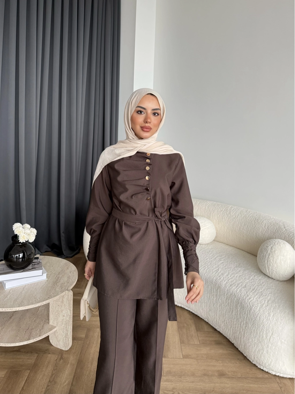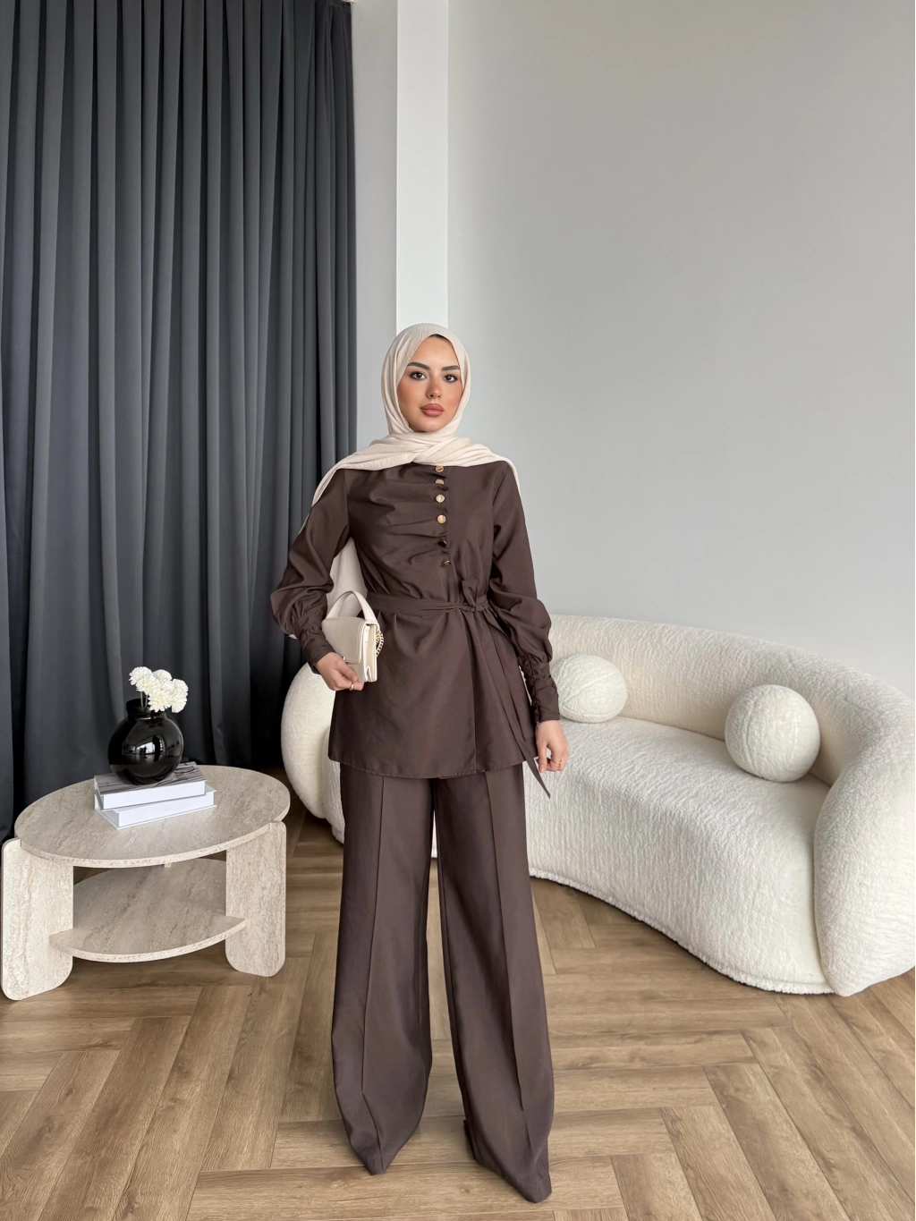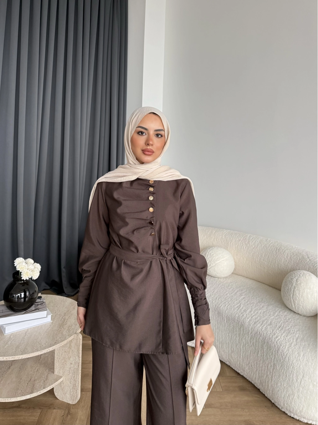 Tb - Roman Düğmeli Cupra Takım - Kahve