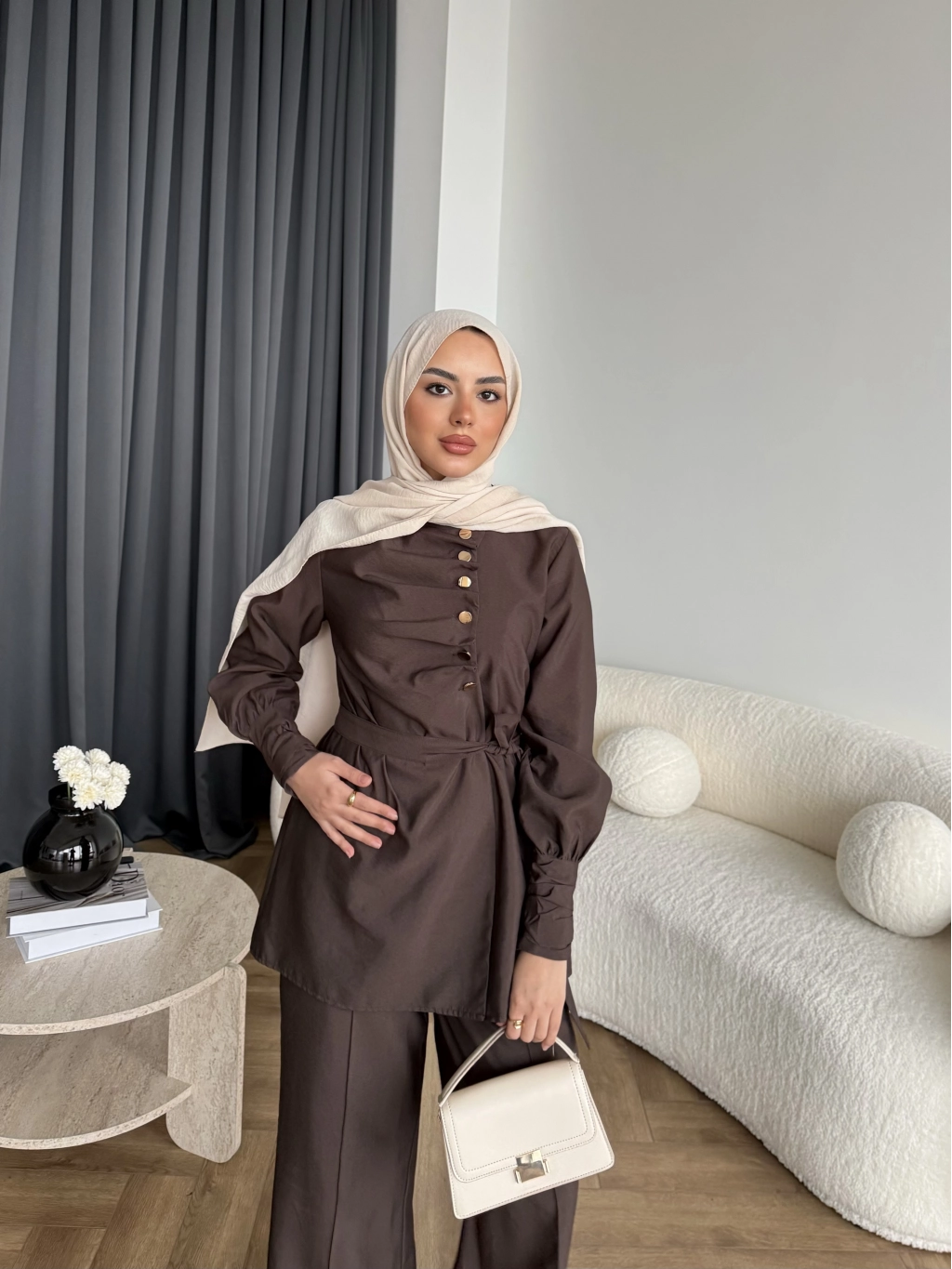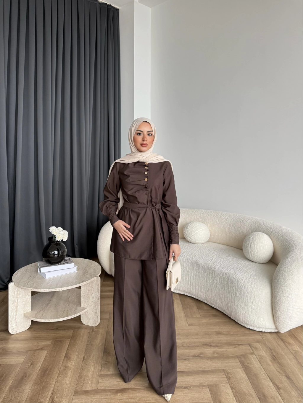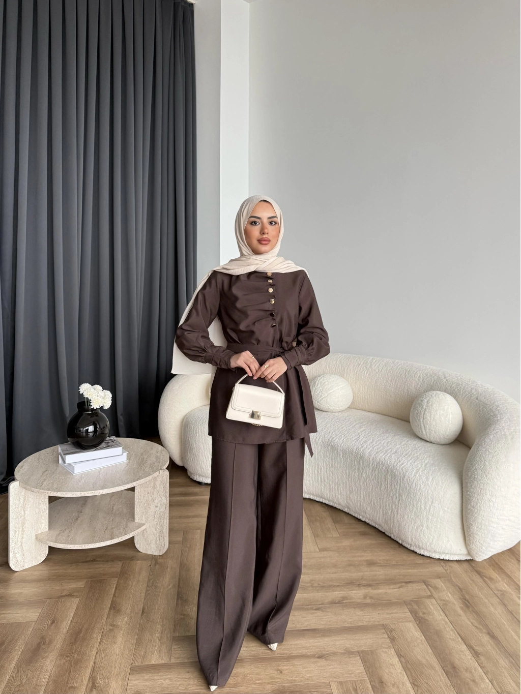 Tb - Roman Düğmeli Cupra Takım - Kahve