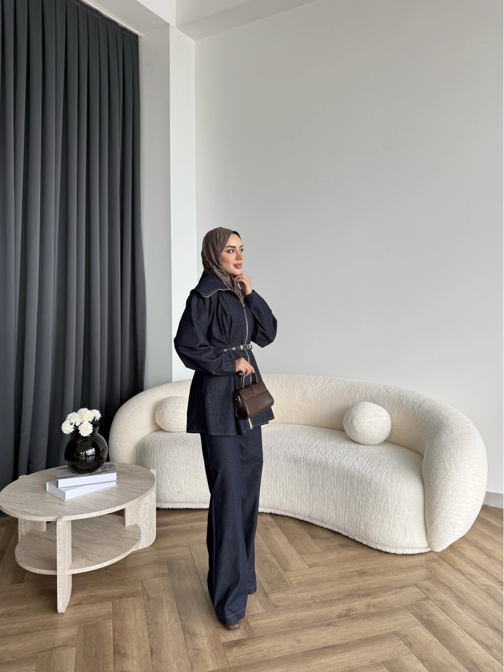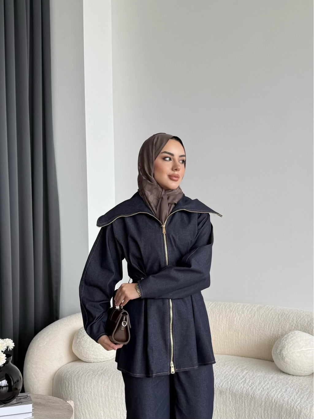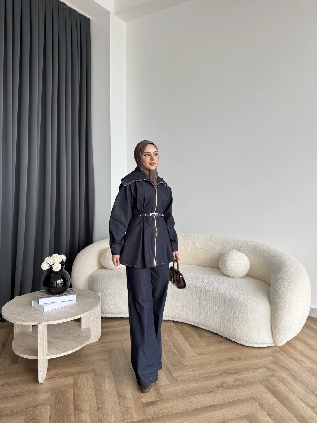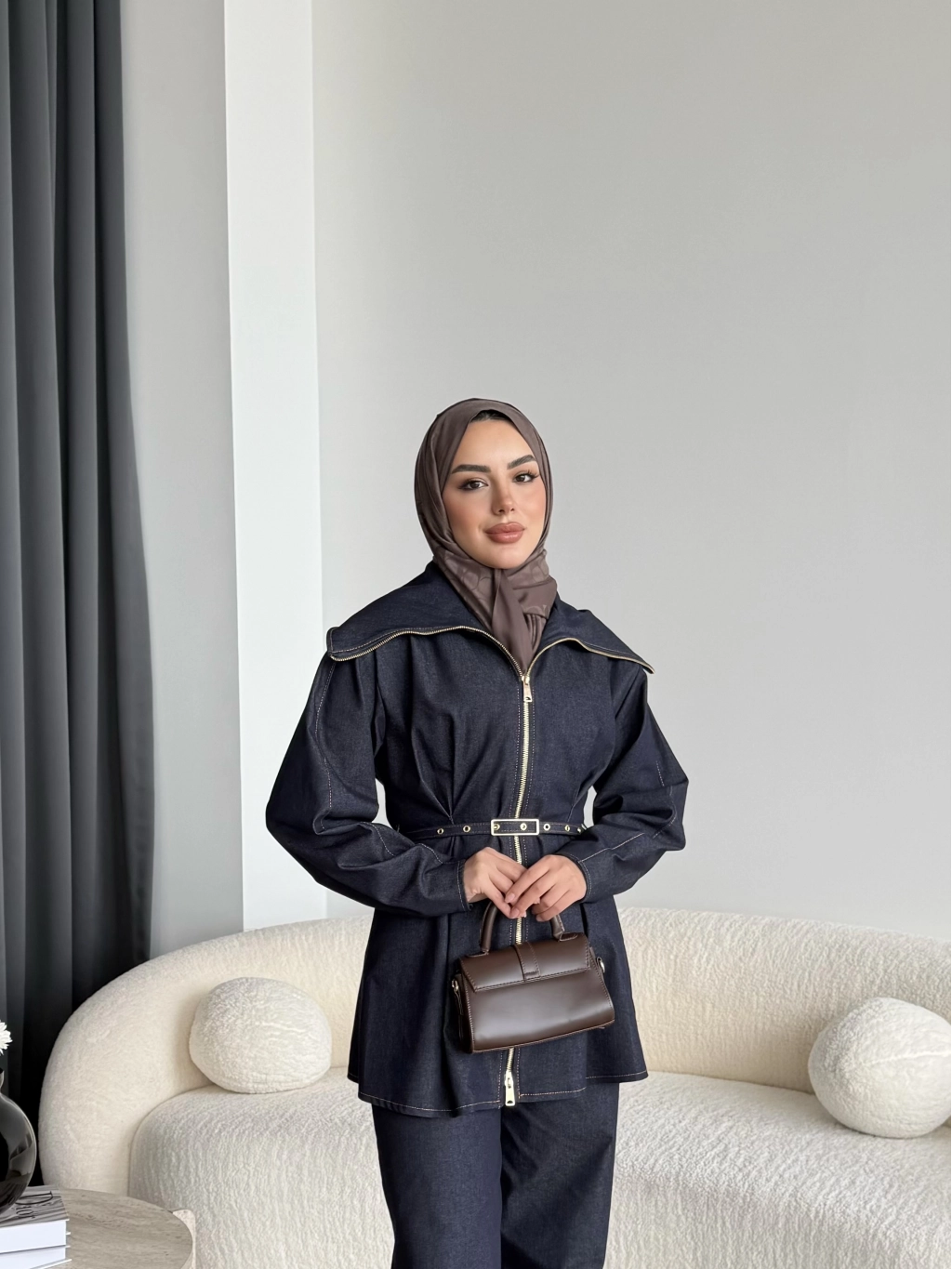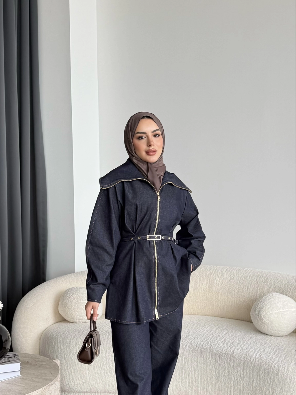 Tb - Selny Fermuarlı Kemerli Kot Takım - Lacivert