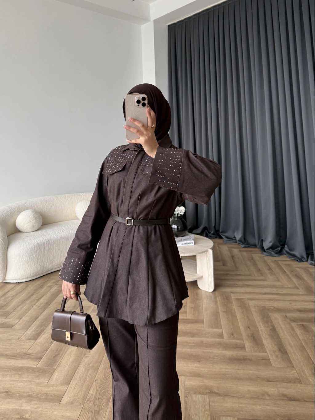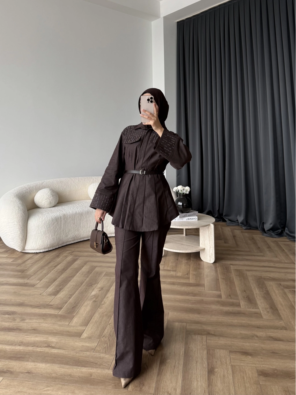 Tb - Stew Taş Detay Denim Takım - Kahve