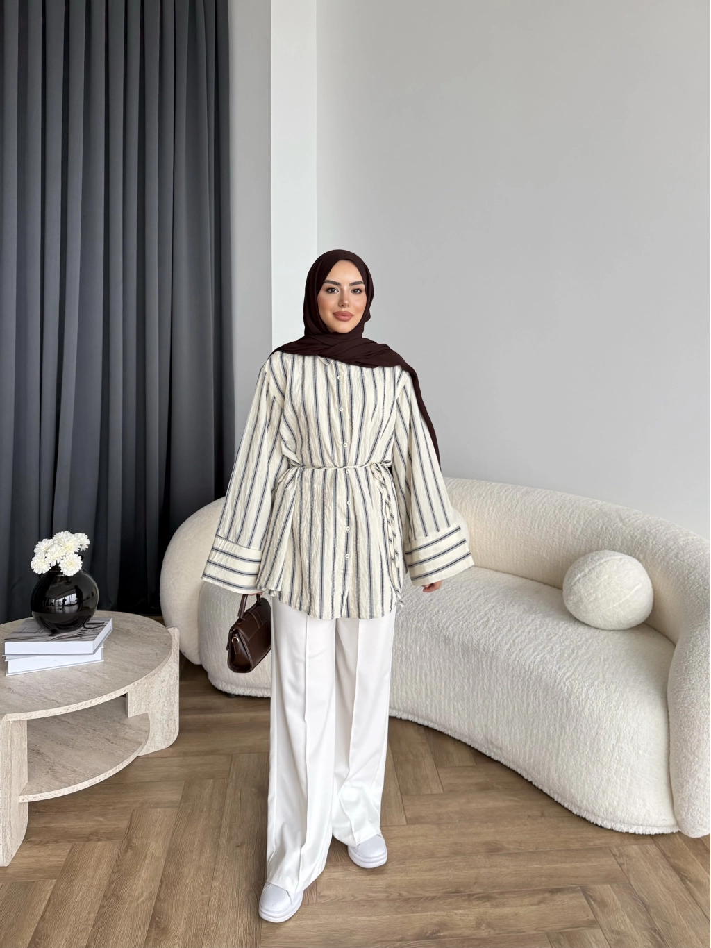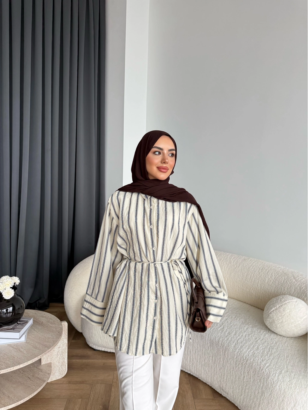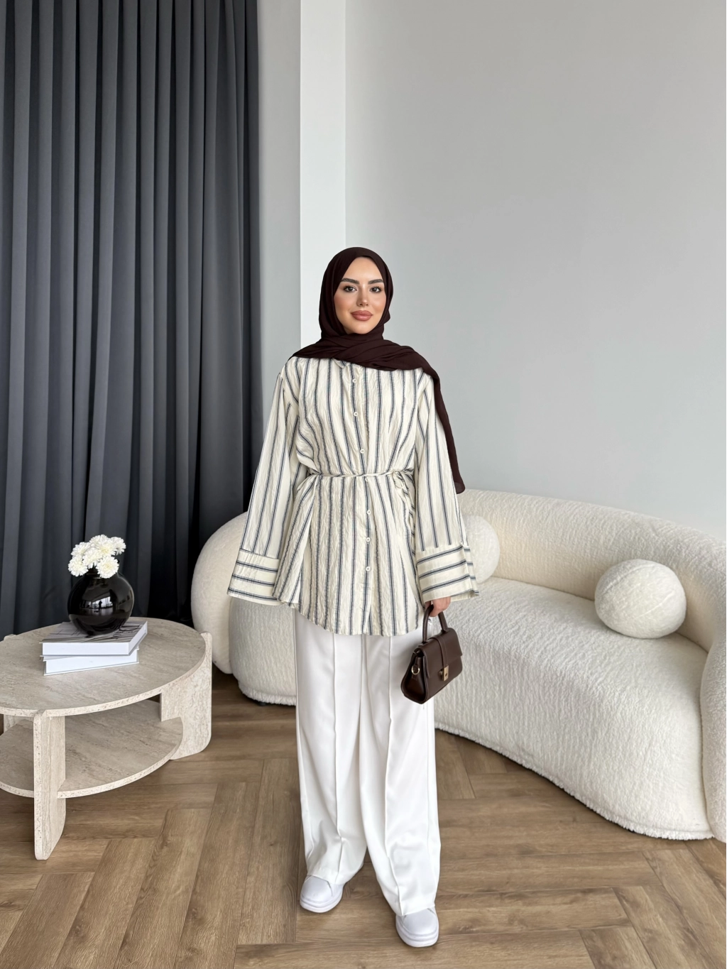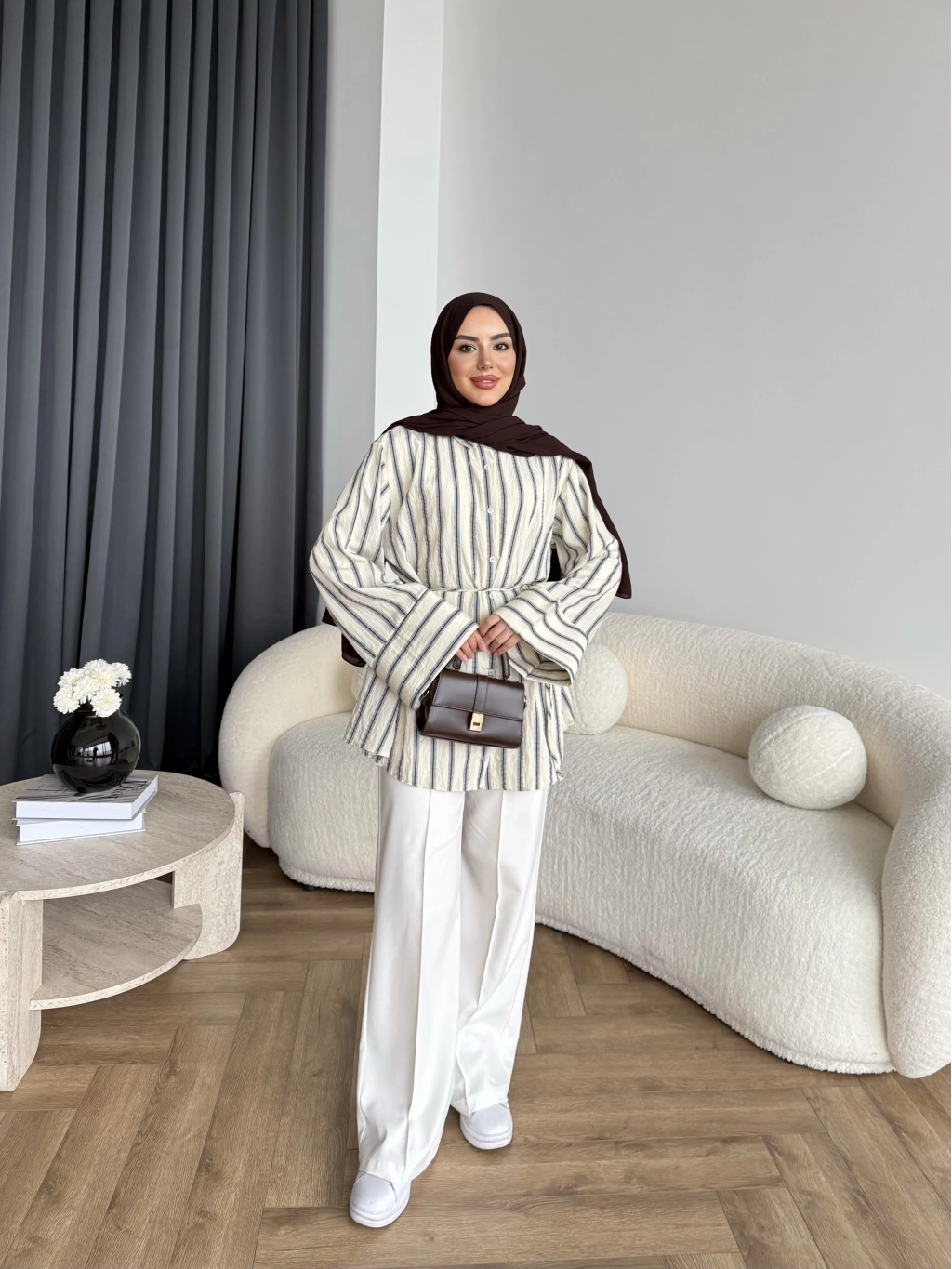 Duq - Gofre Çizgili Takım - Kahve