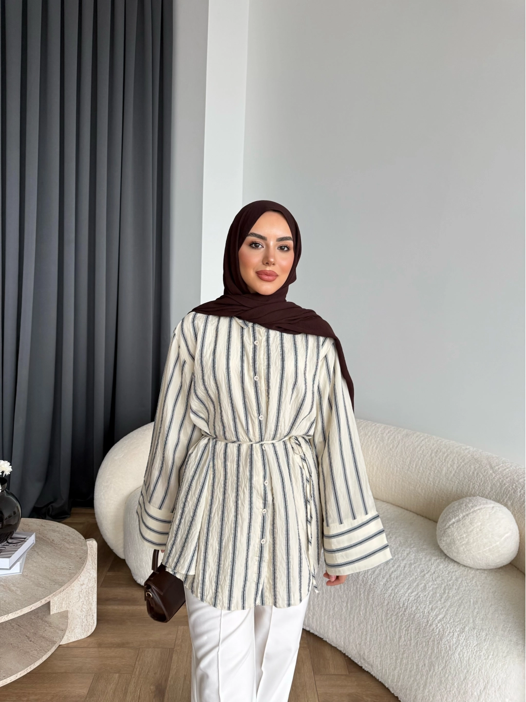 Tb - Veta Çizgili Gömlek - Bej