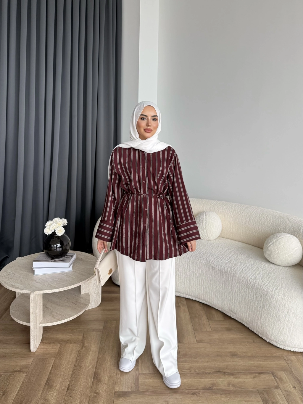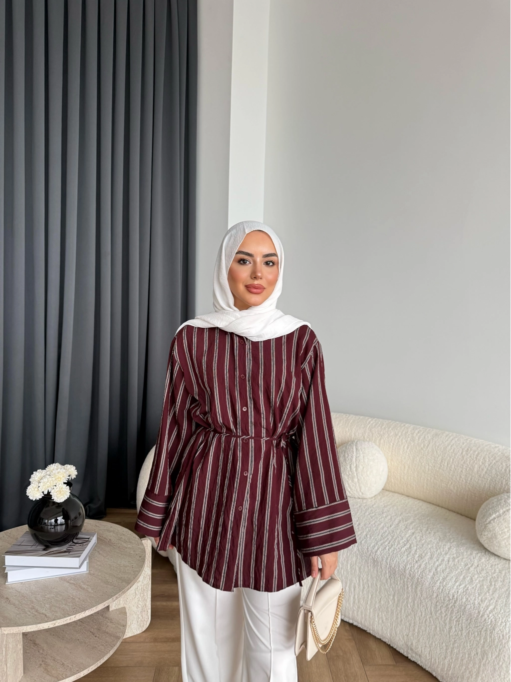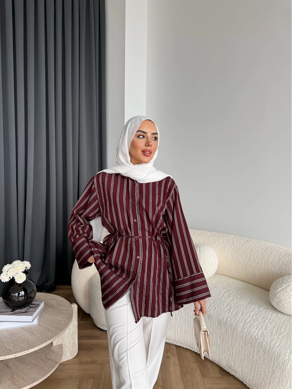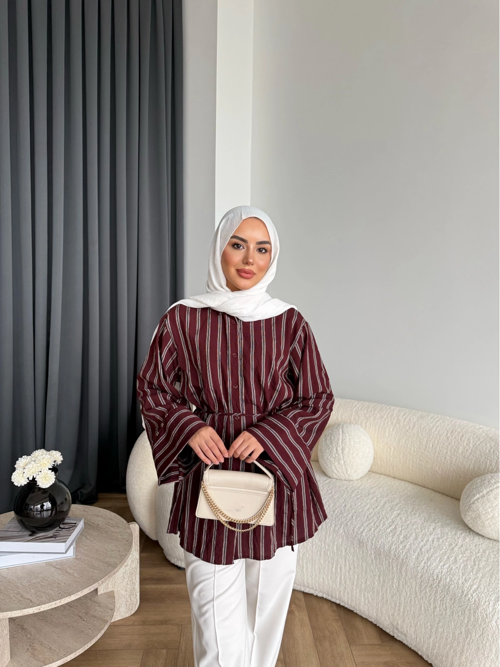 Tb - Veta Çizgili Gömlek - Bordo