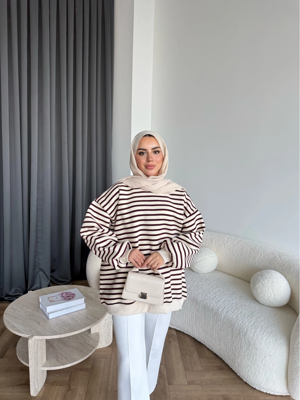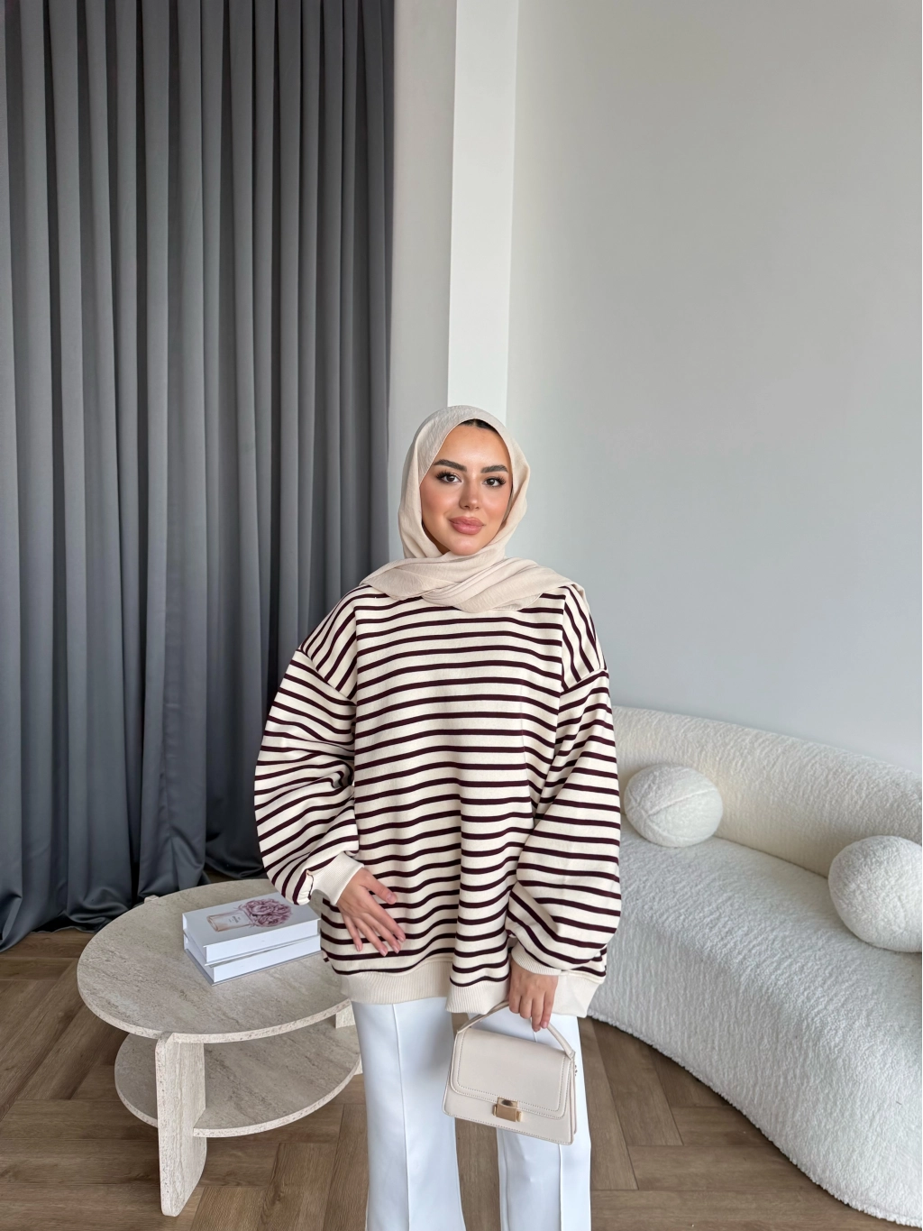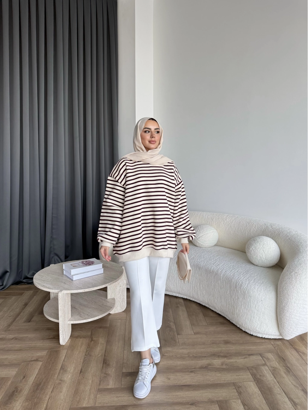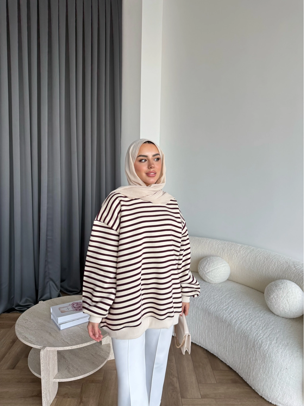 Twist Çizgili Sweat - Bordo
