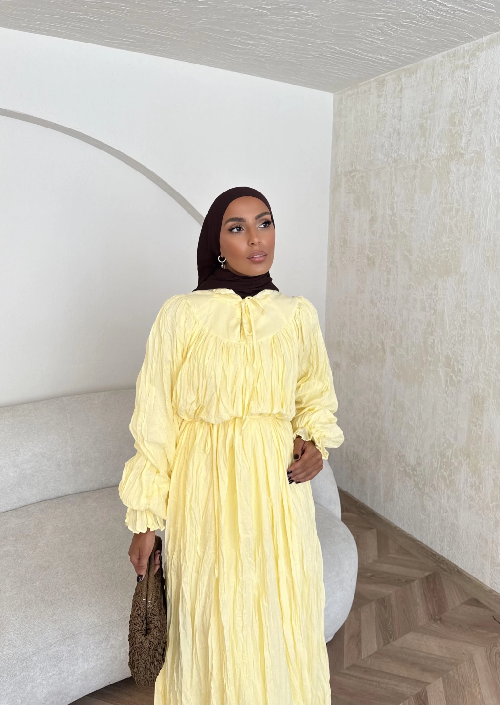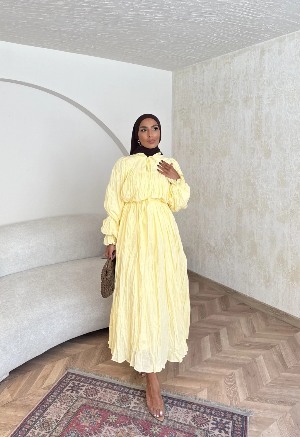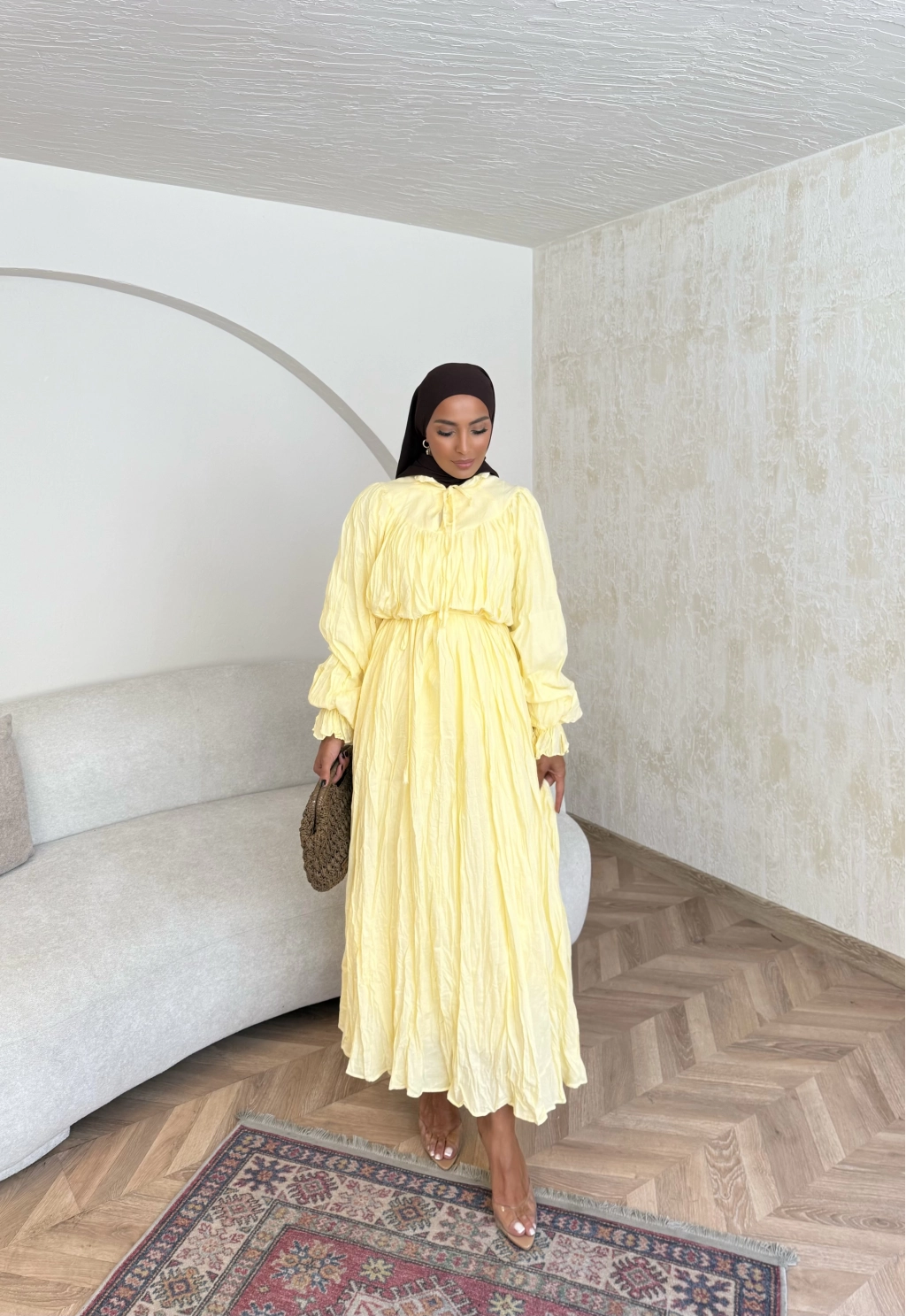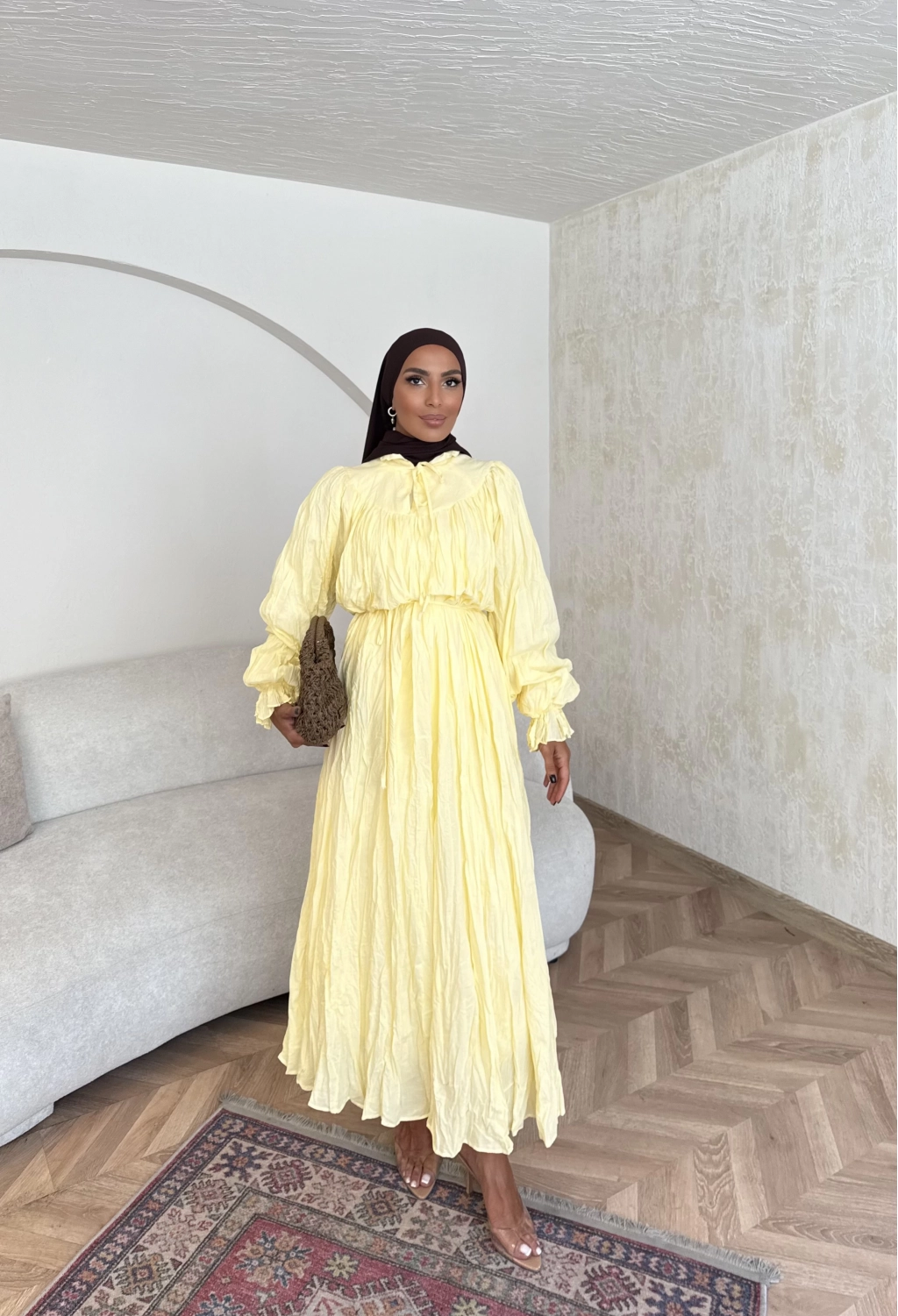 Veluna Kırışık Elbise - Sarı