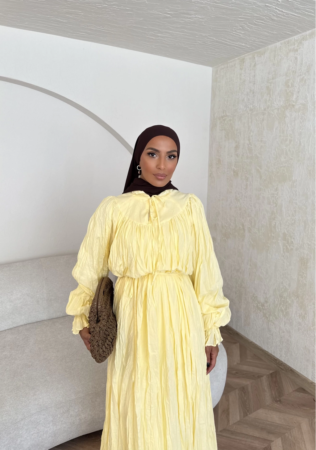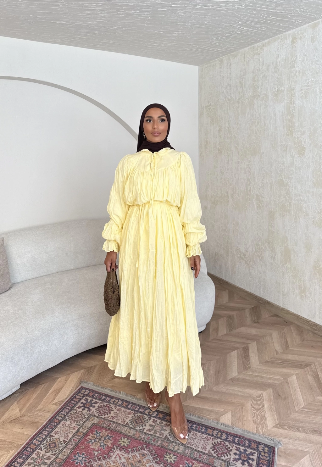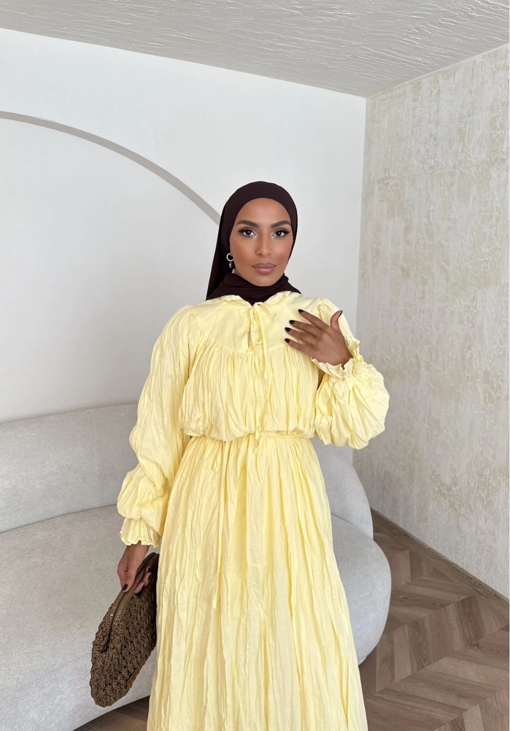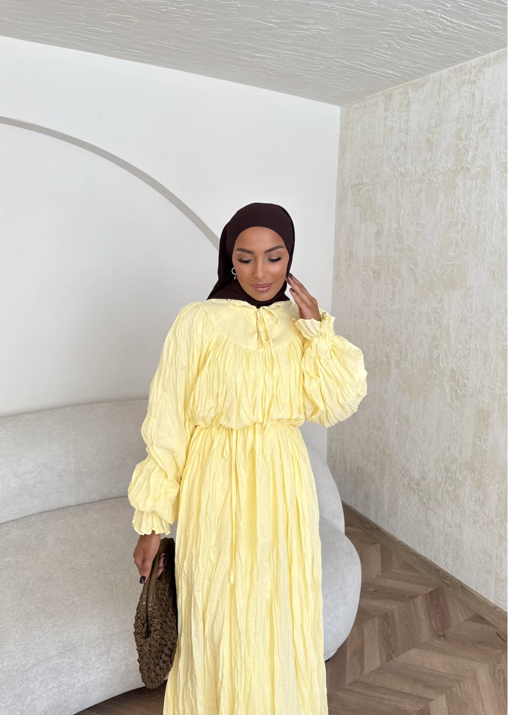 Veluna Kırışık Elbise - Sarı