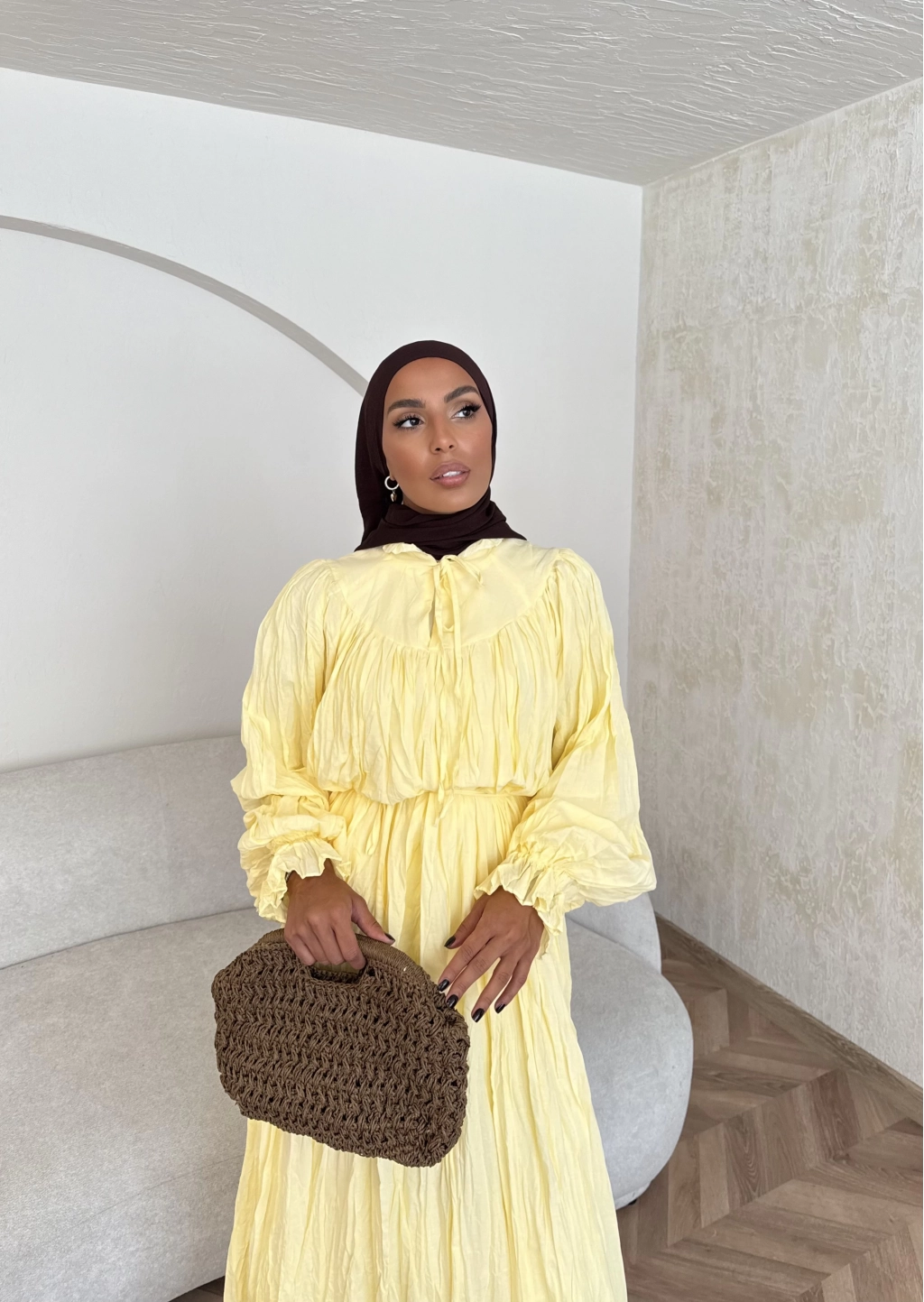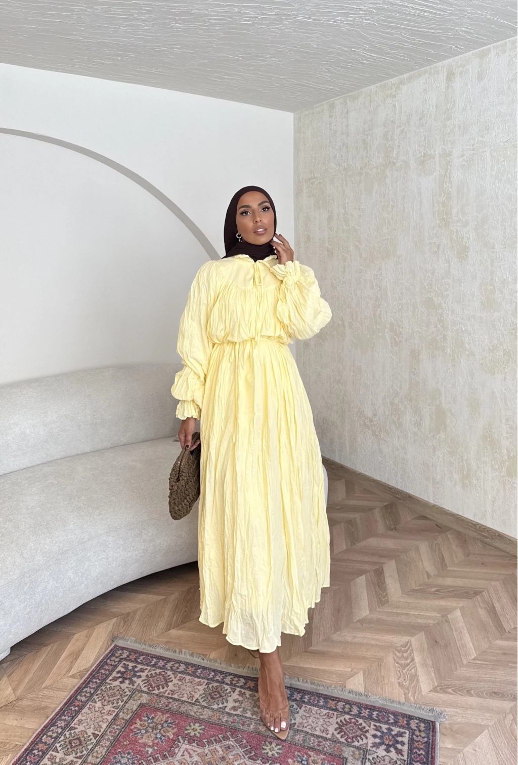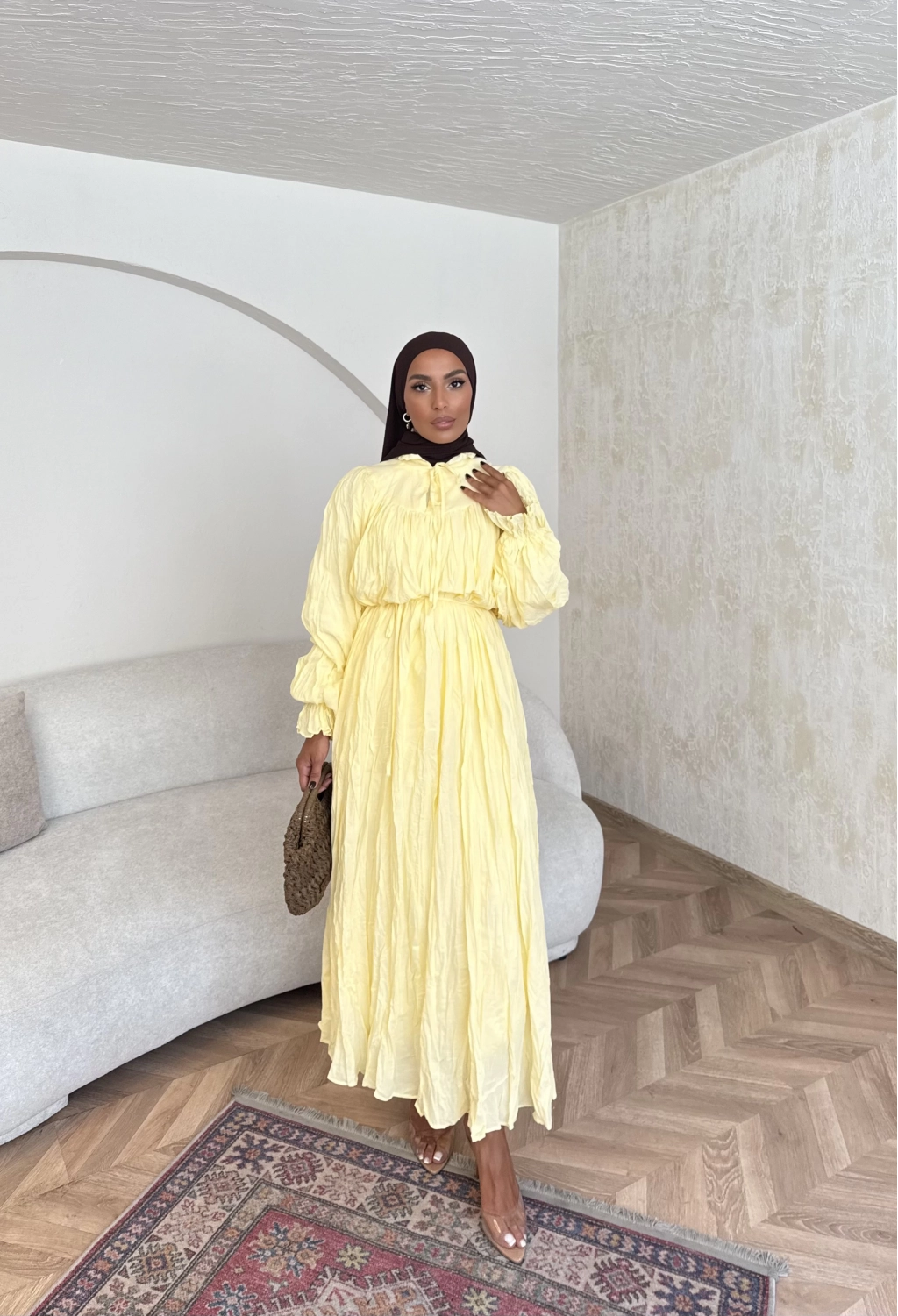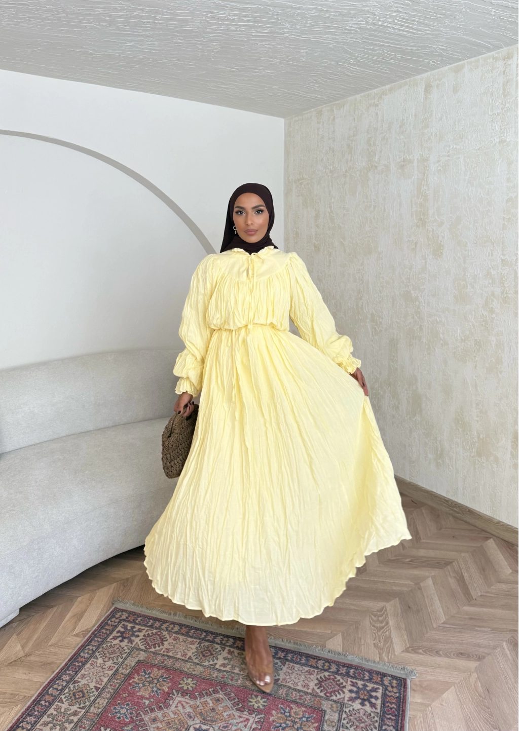 Veluna Kırışık Elbise - Sarı