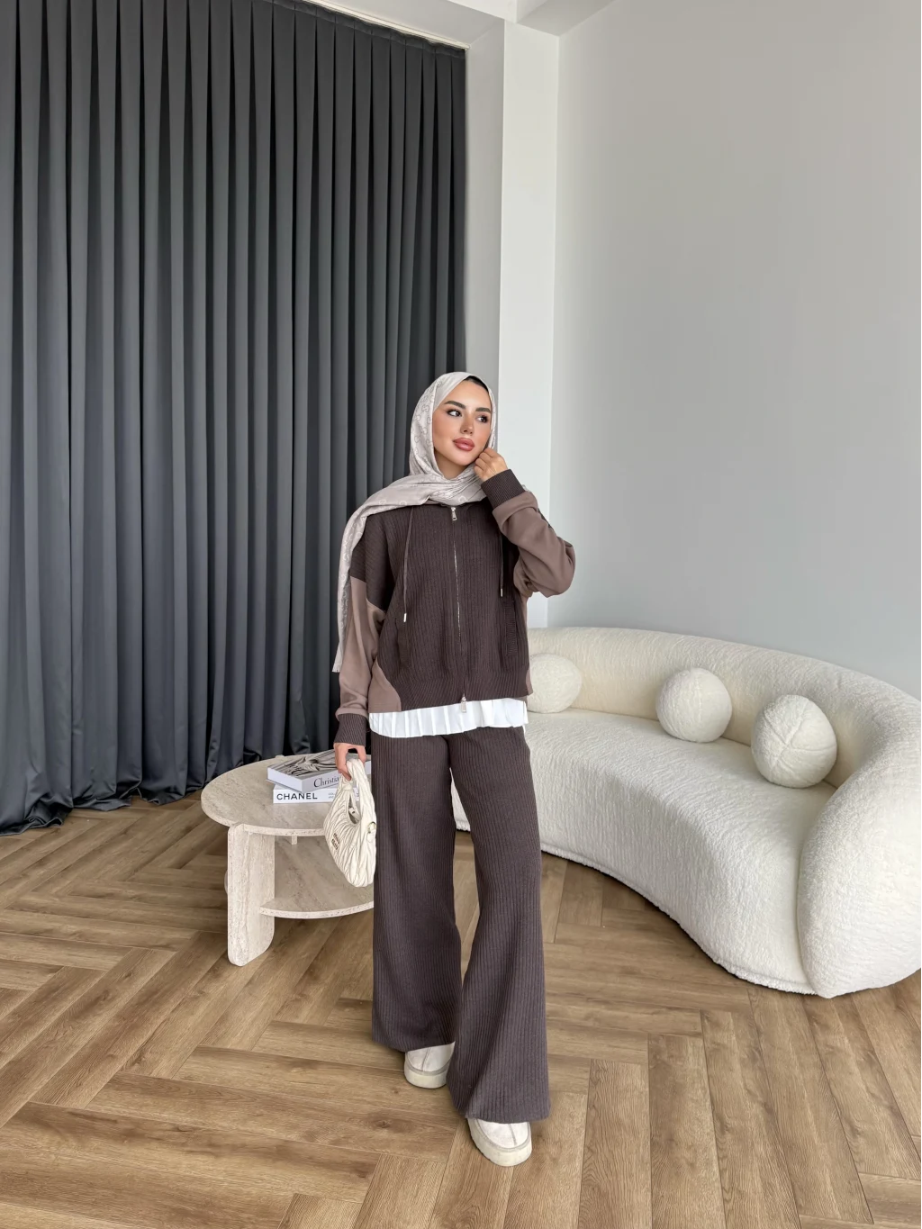 Venusa Kapşonlu Triko Takım - Kahve