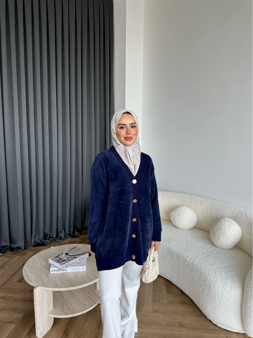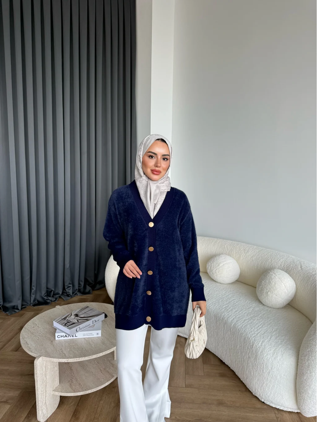 Viona Tüylü Hırka - Lacivert