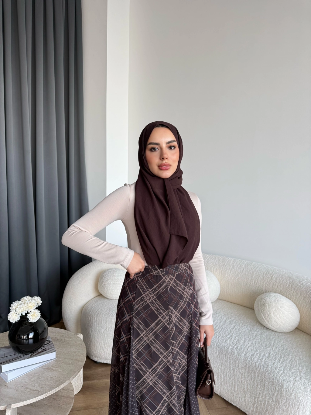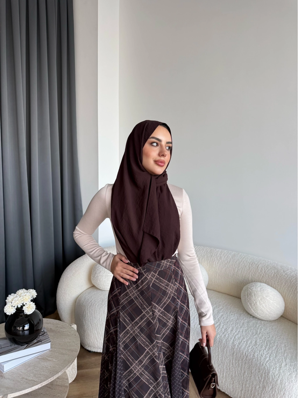 Hen - Luzy Şifon Elbise - Kahve