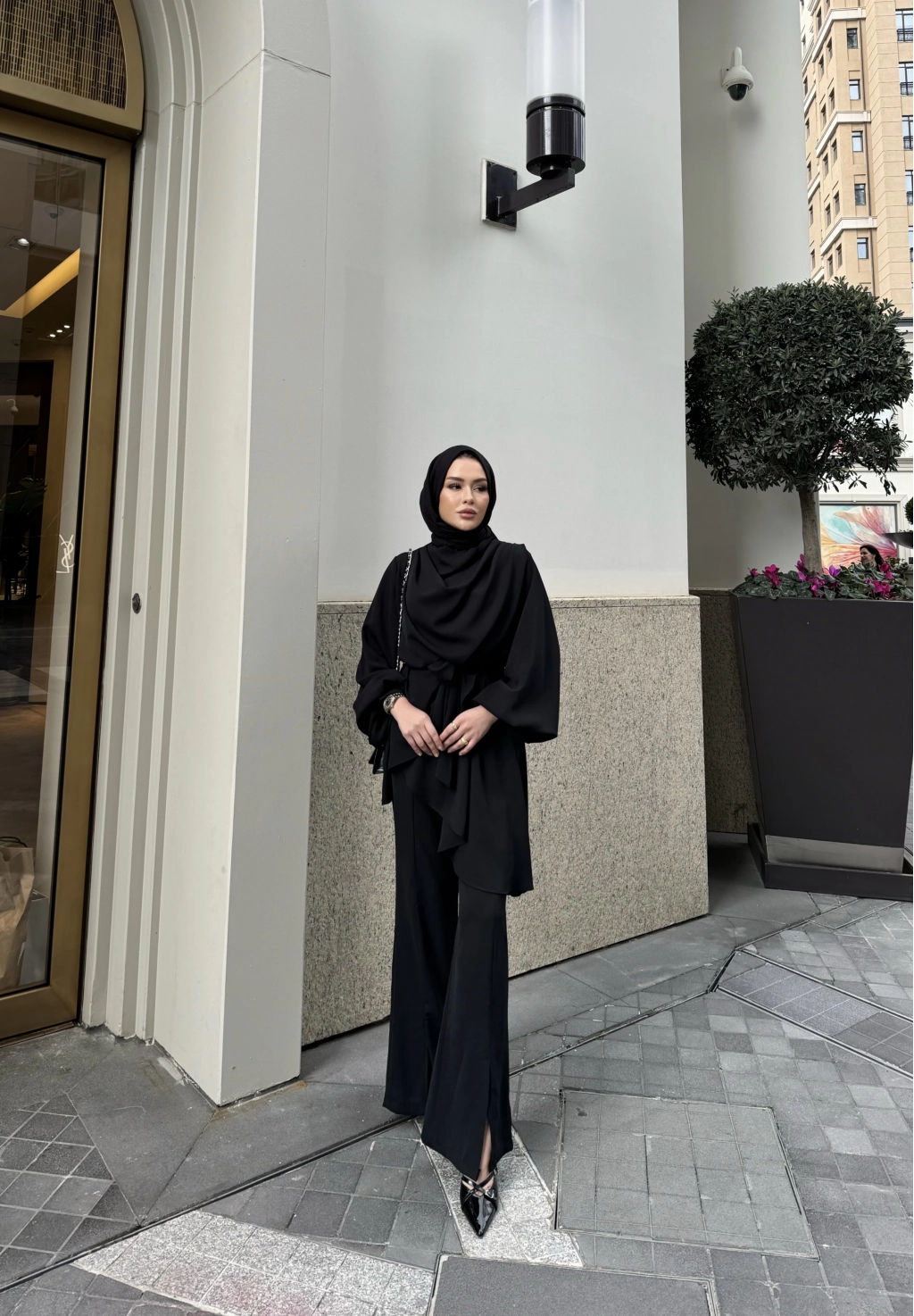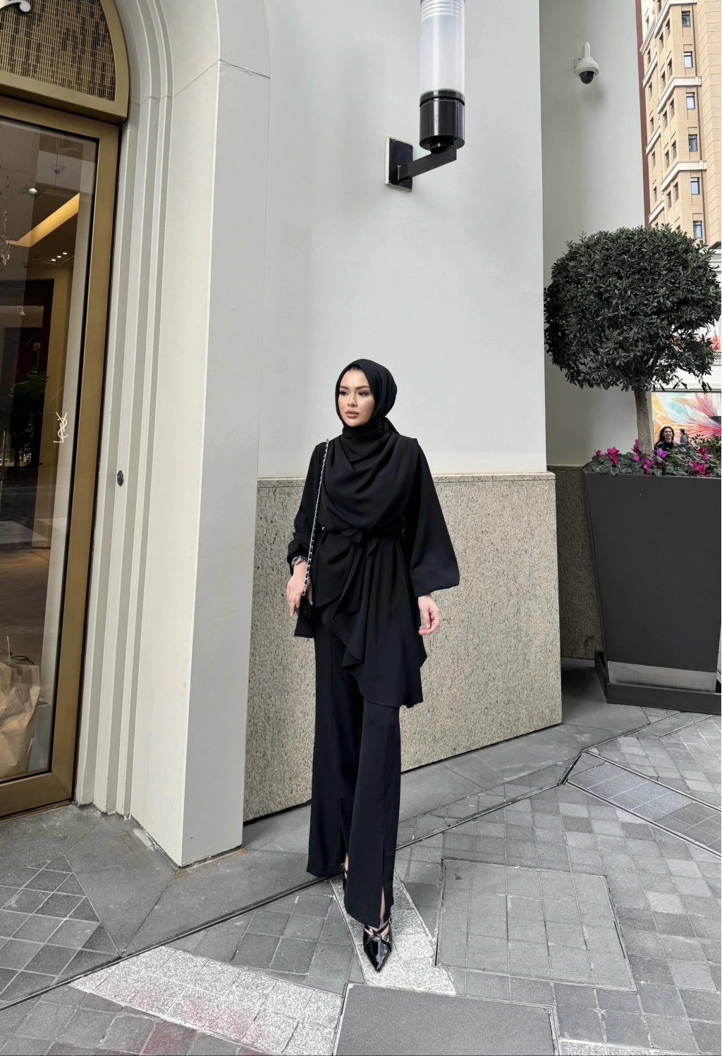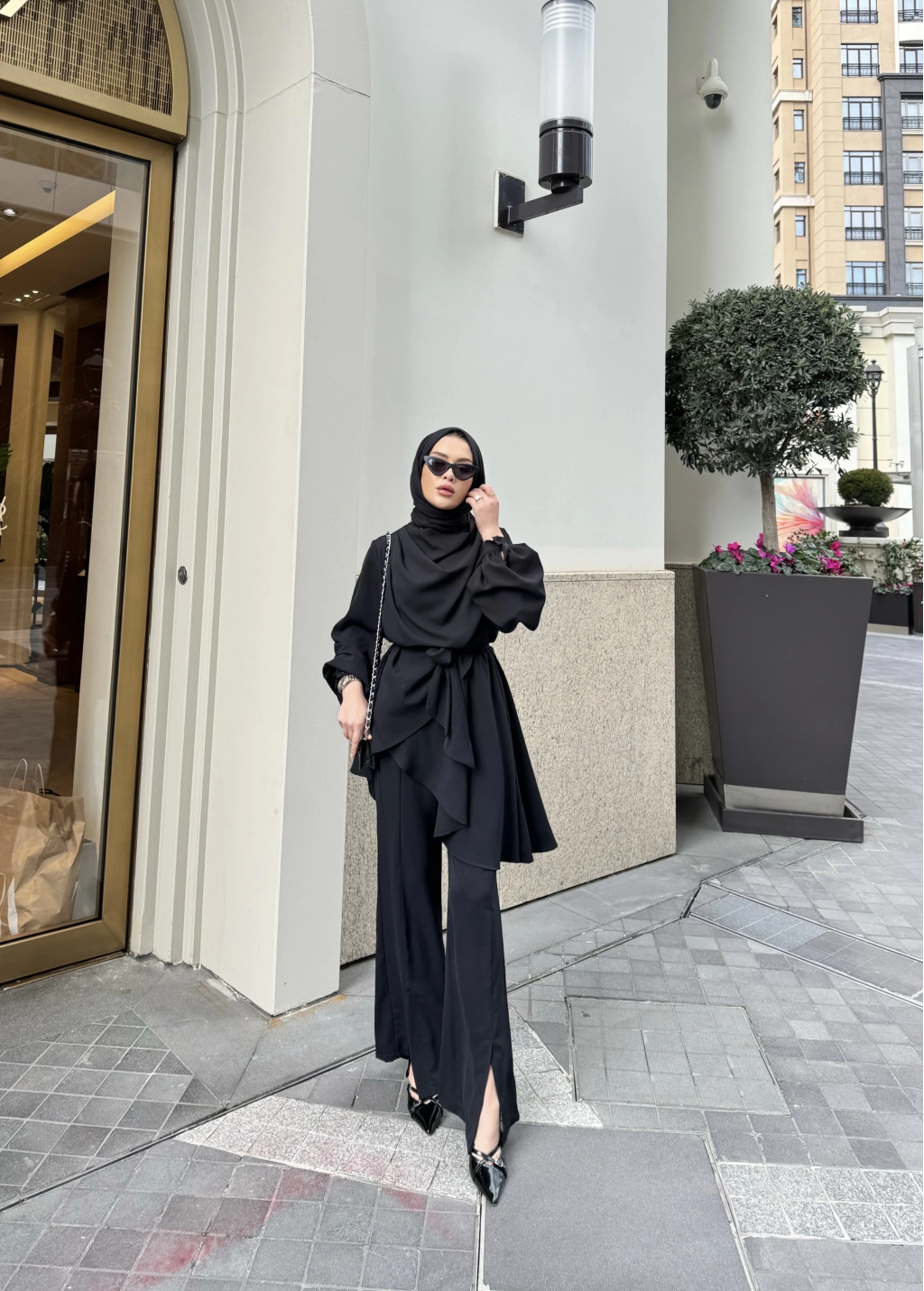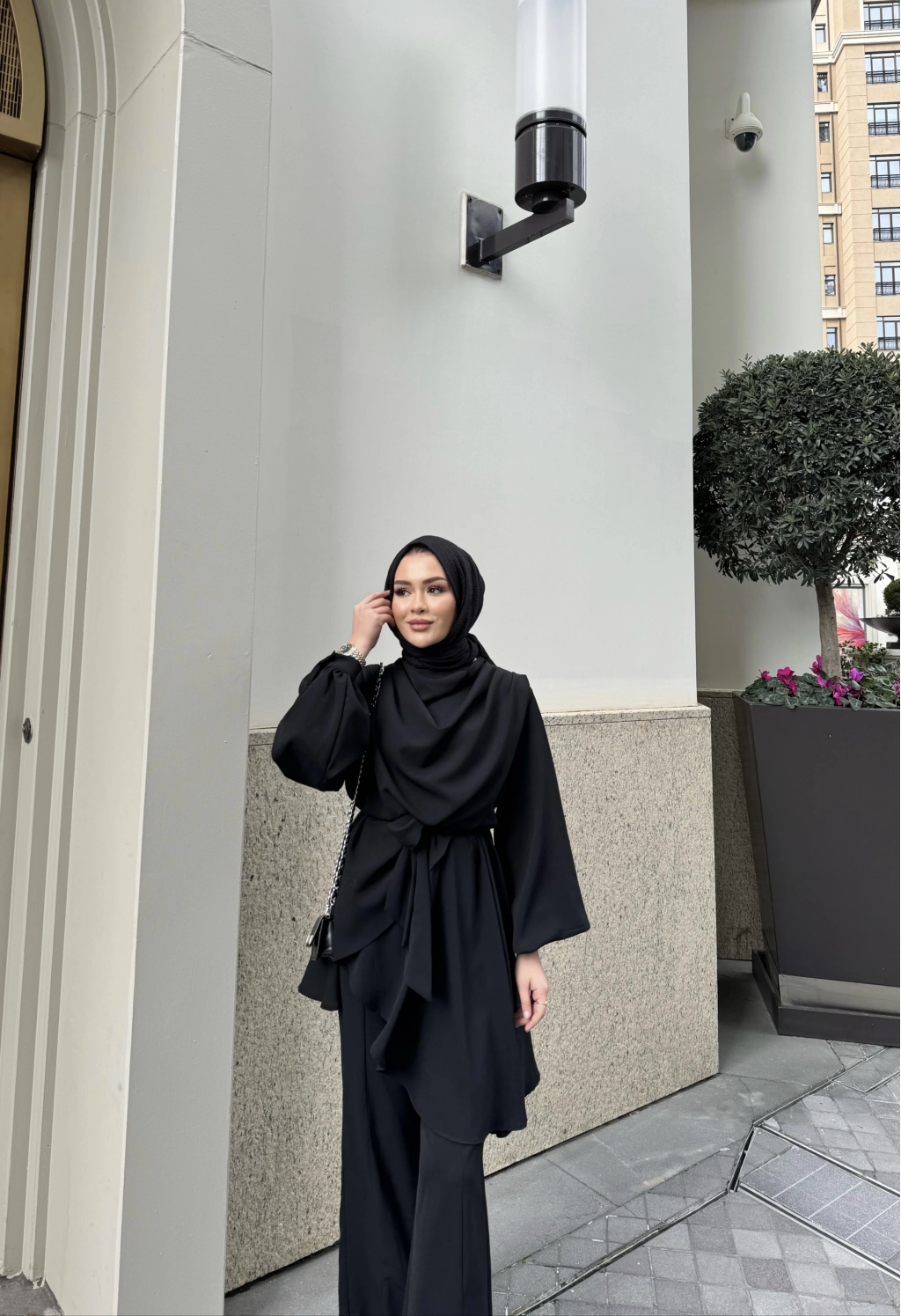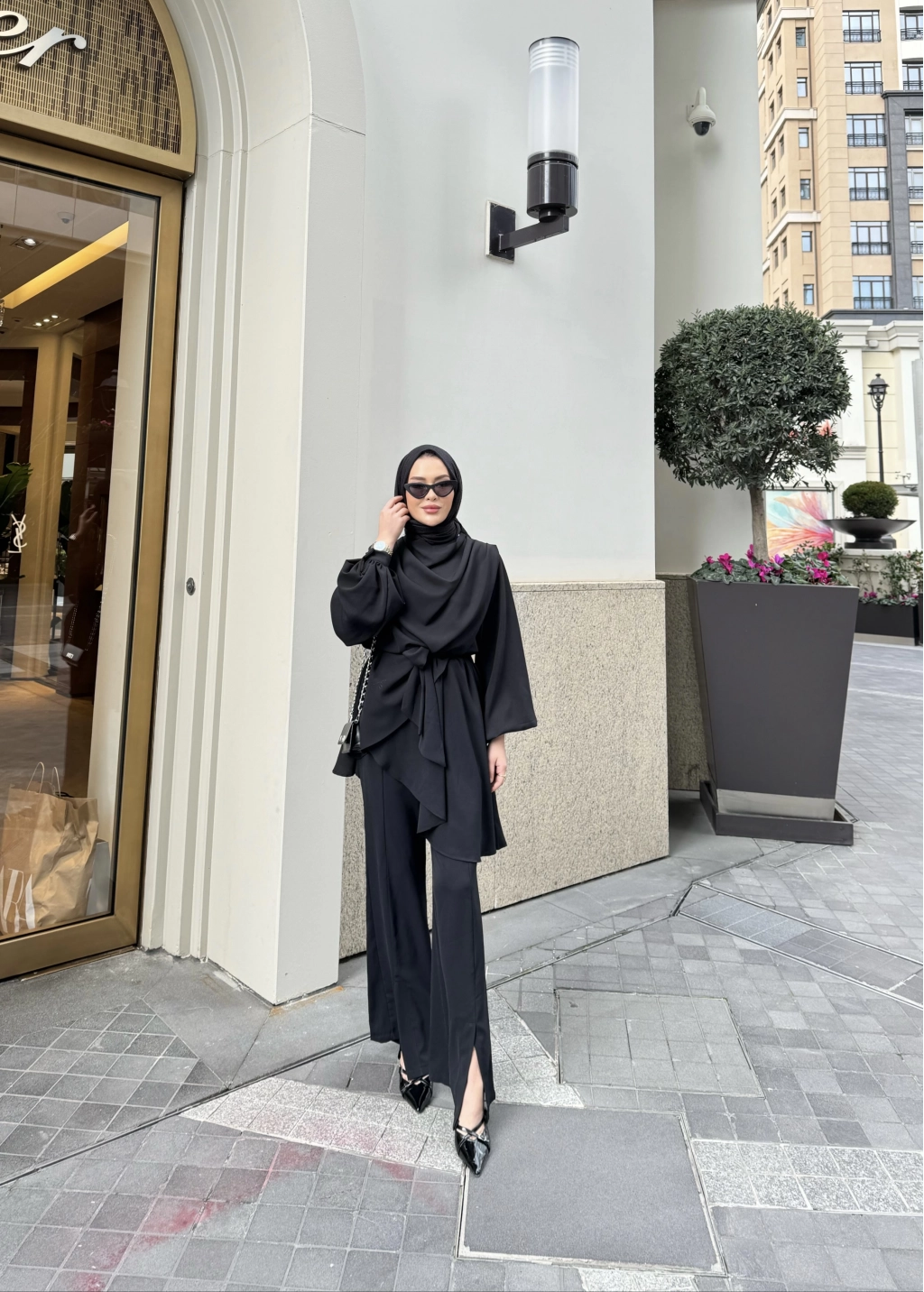 Krep kumaştan üretilen takımın seyyar kemerlidir , belinde seyyar kuşağı mevcuttur. Pantolon beli lastiklidir,