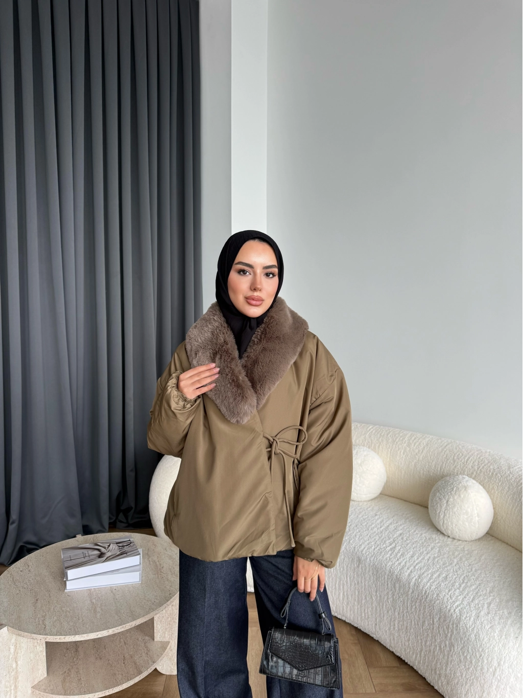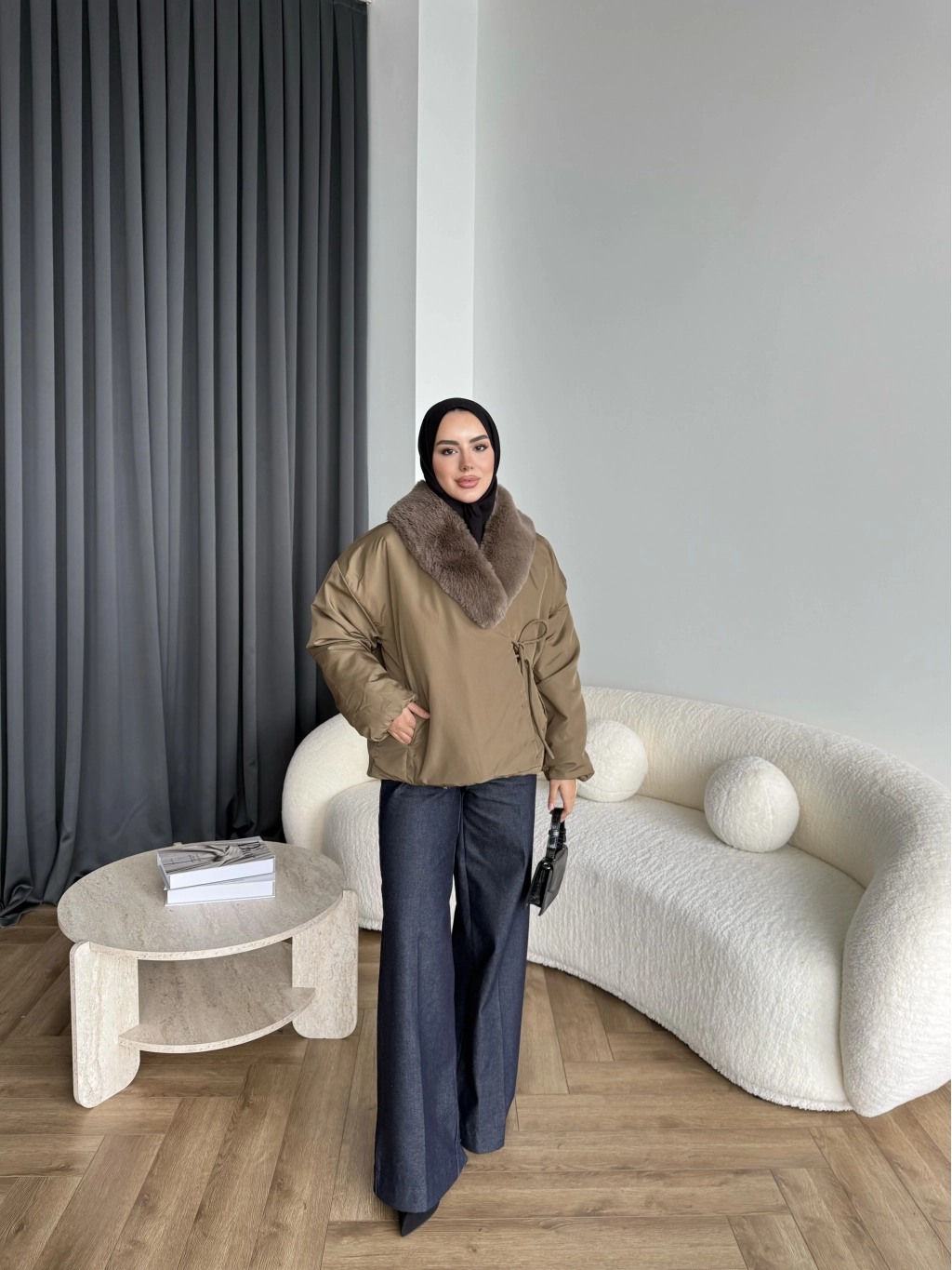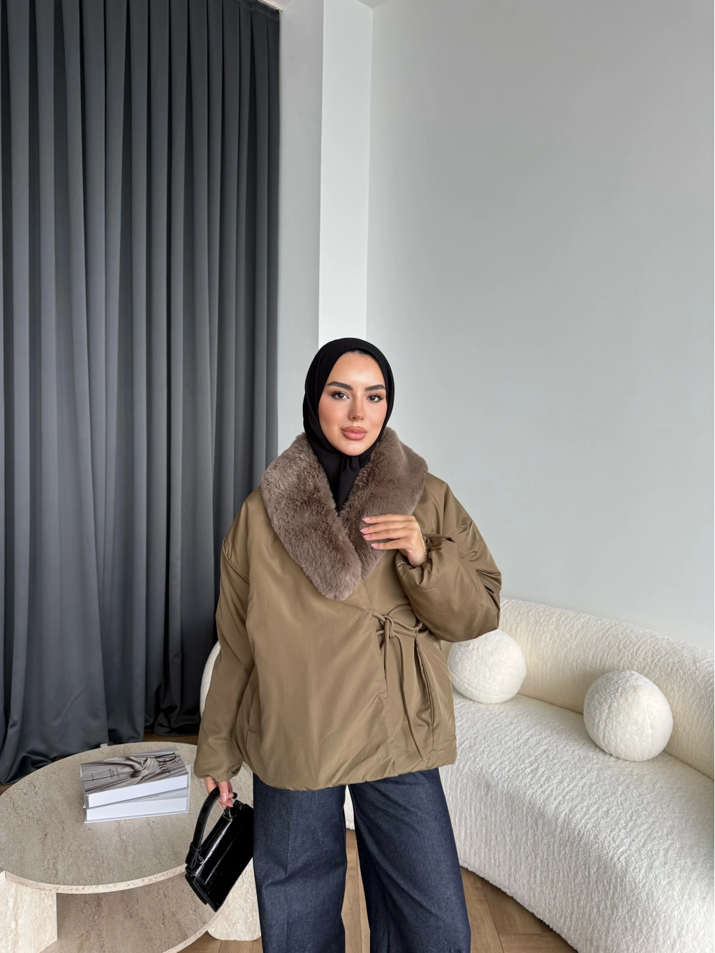 Wilma Kürk Detaylı Mont - Zeytin Yeşil