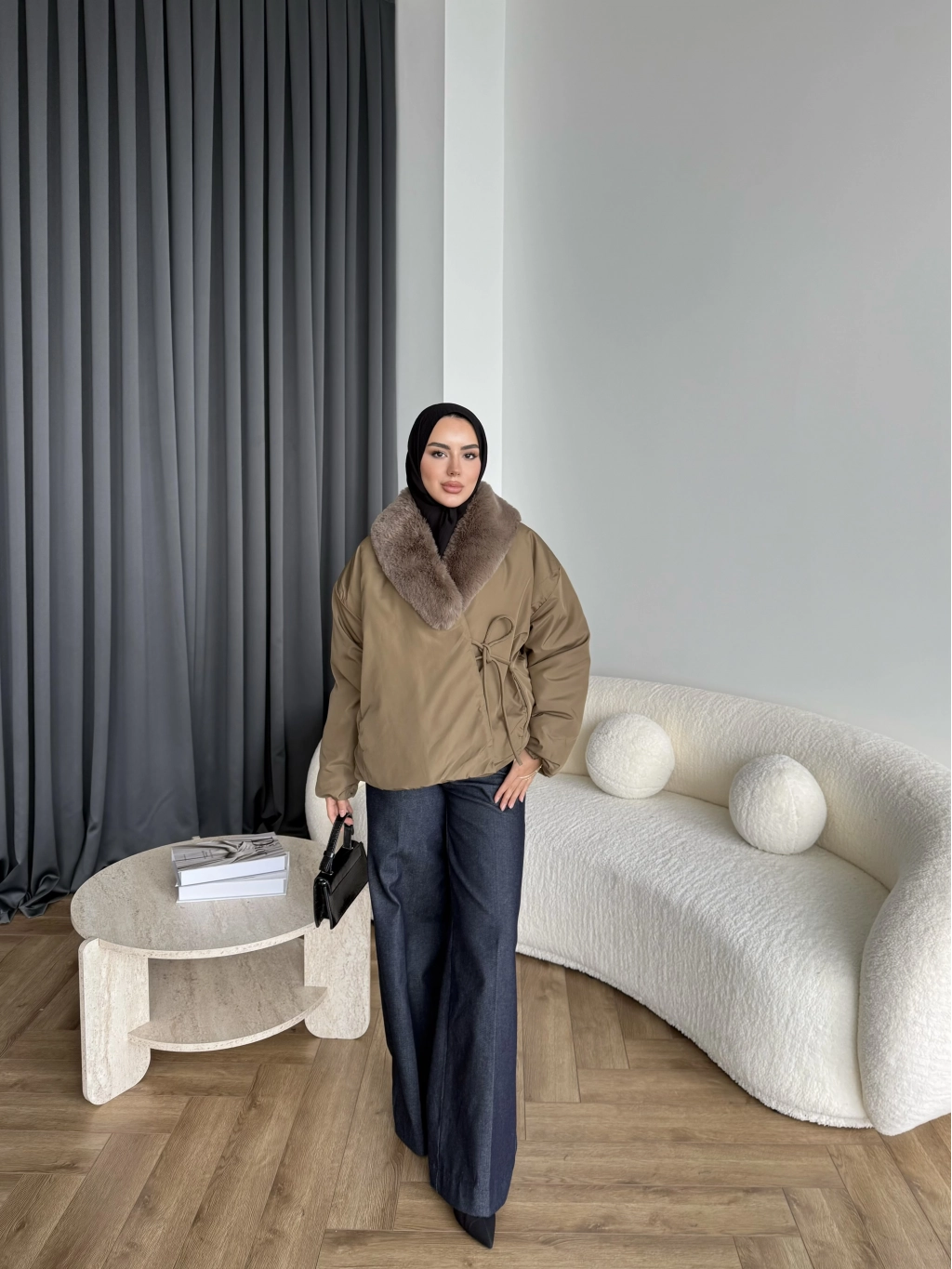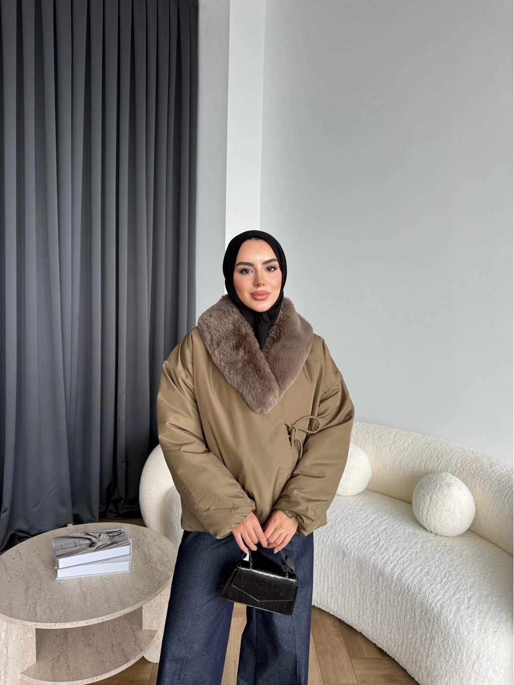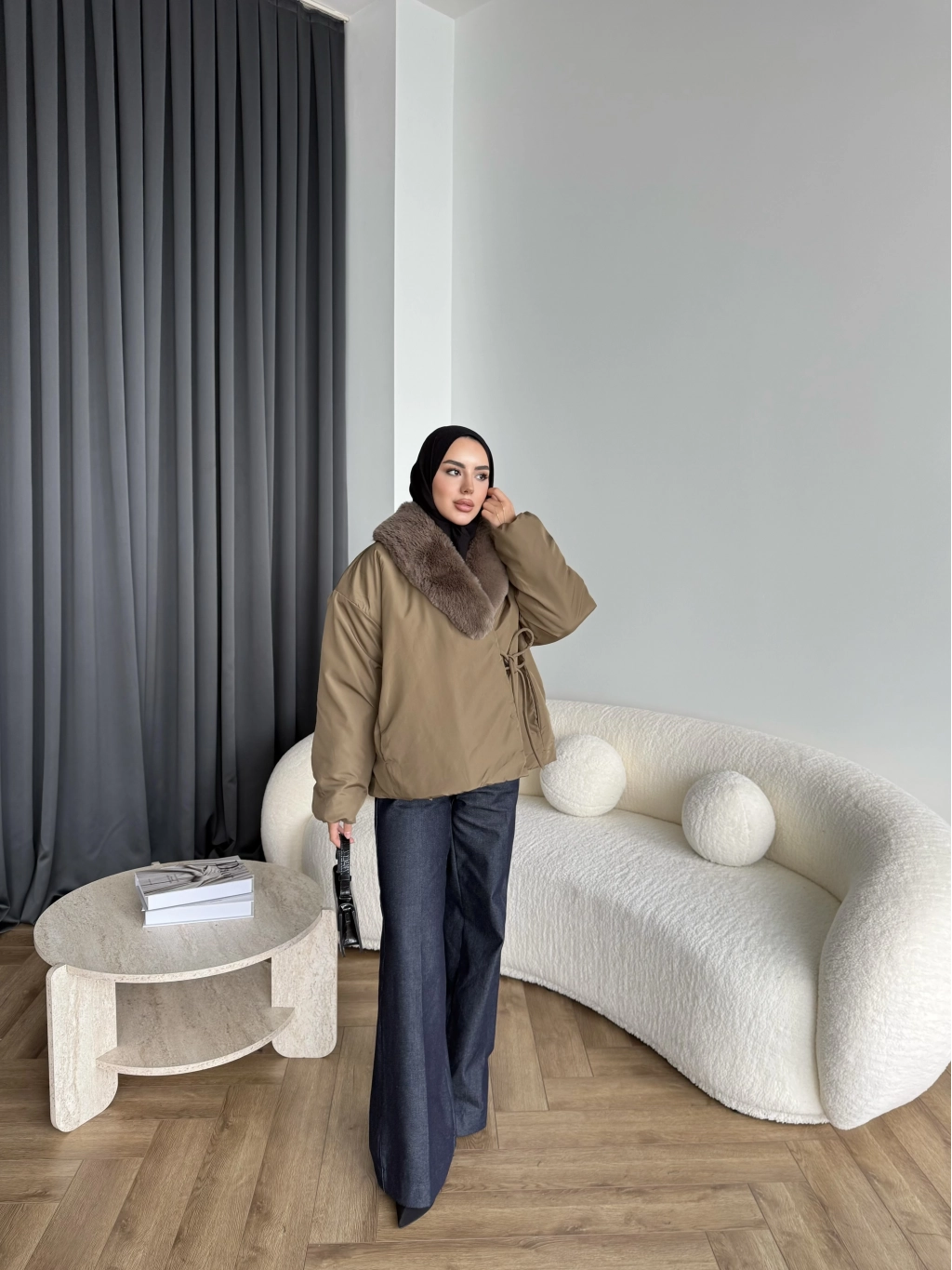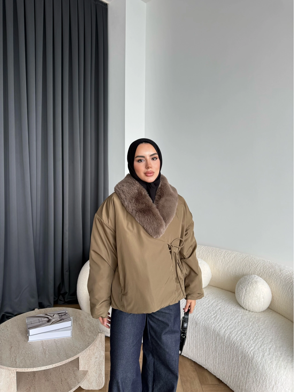 Wilma Kürk Detaylı Mont - Zeytin Yeşil
