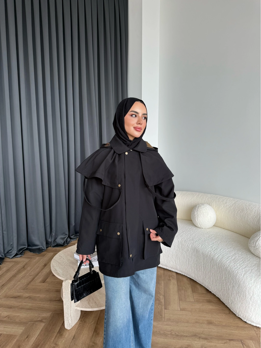 Winter Premium Lüx Trençkot - Siyah