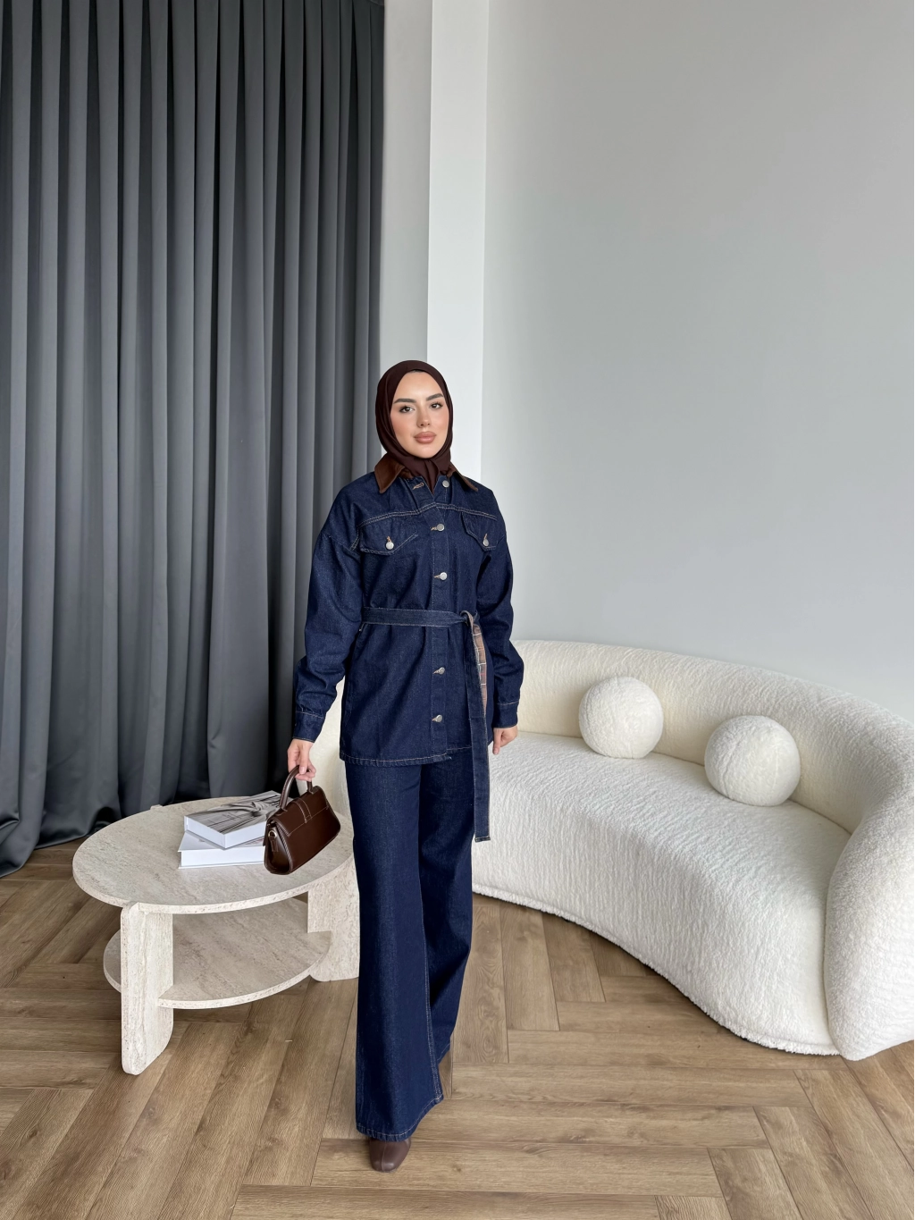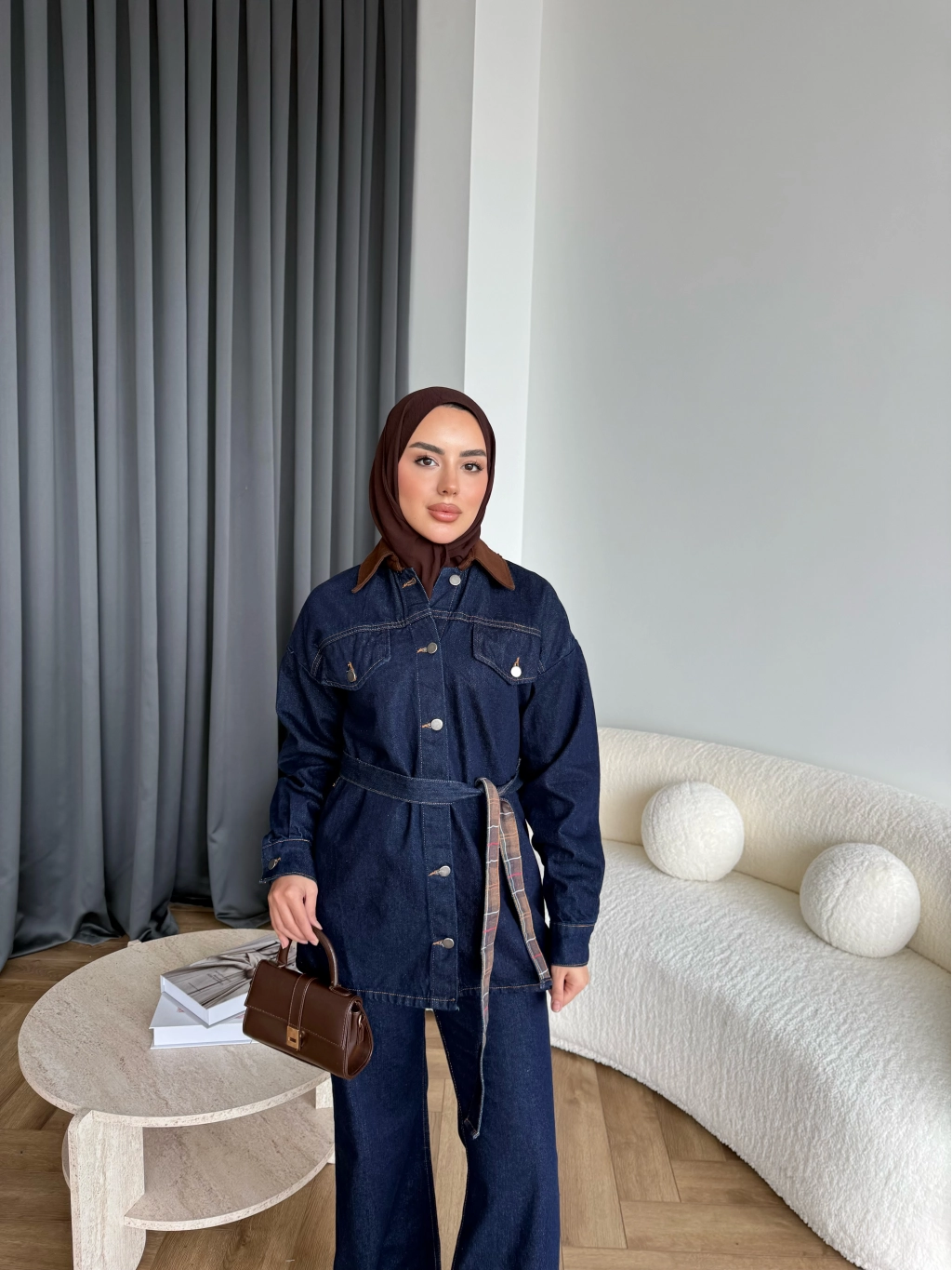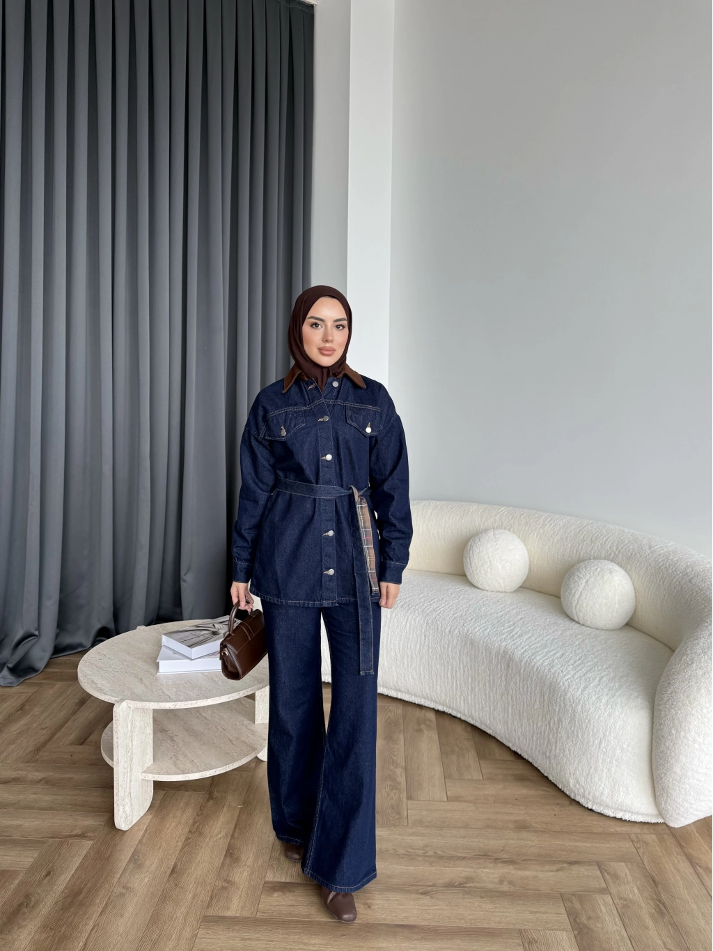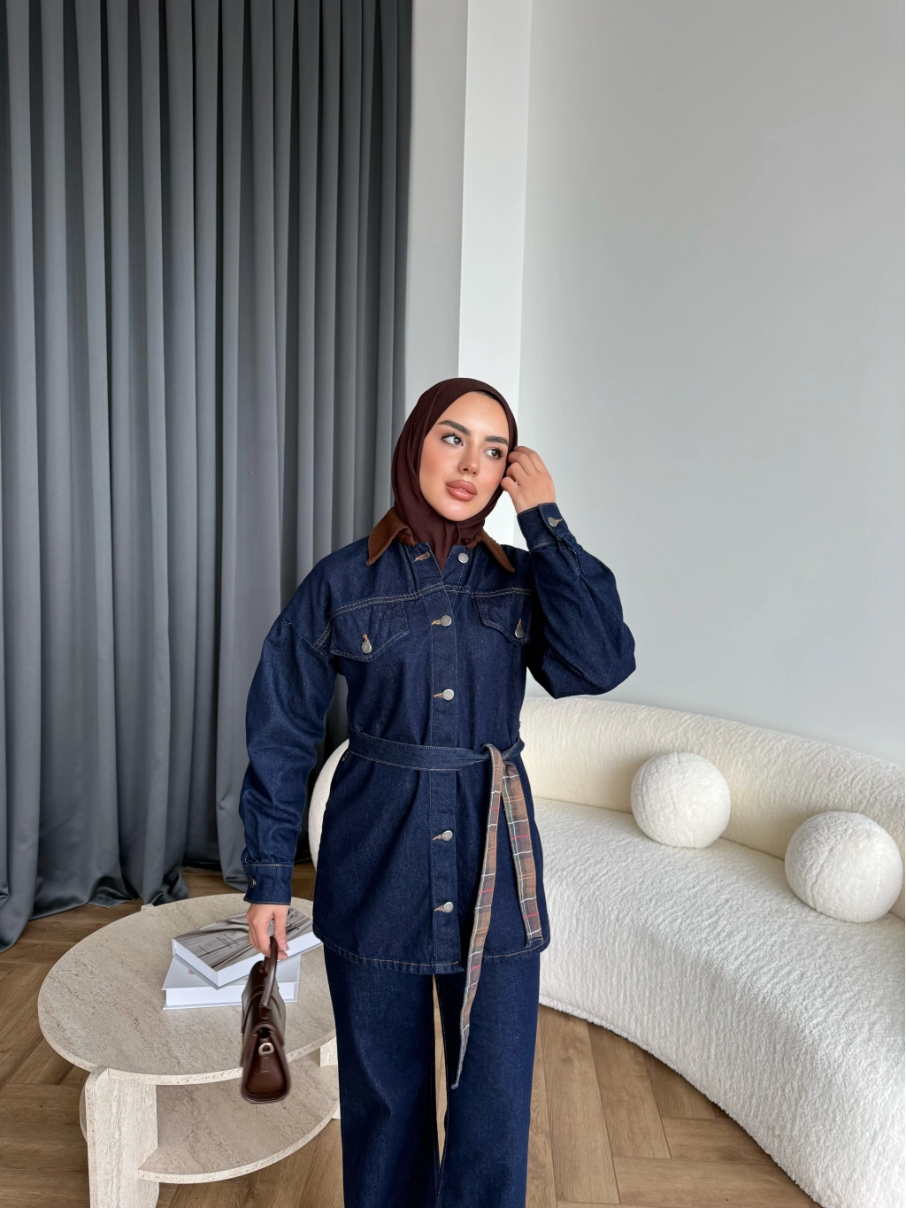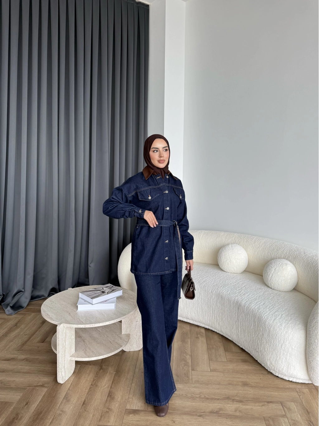 Yaka Detaylı Kot Takım