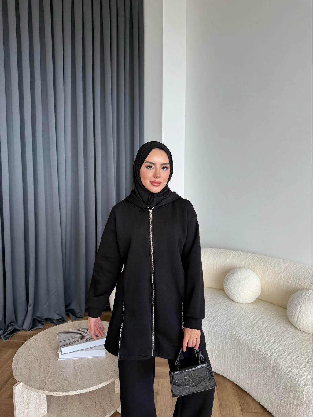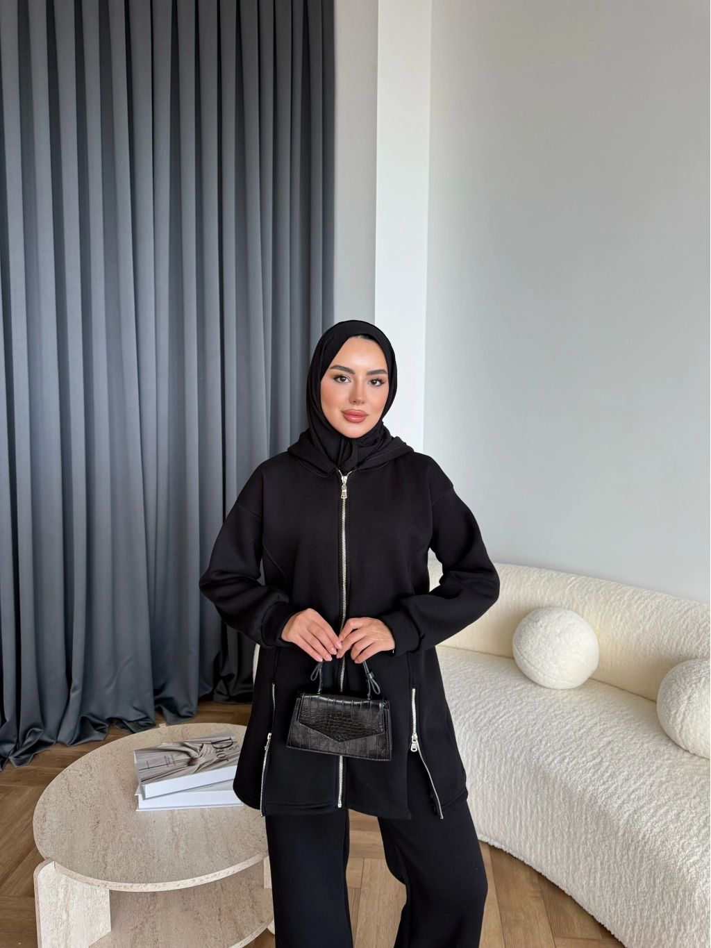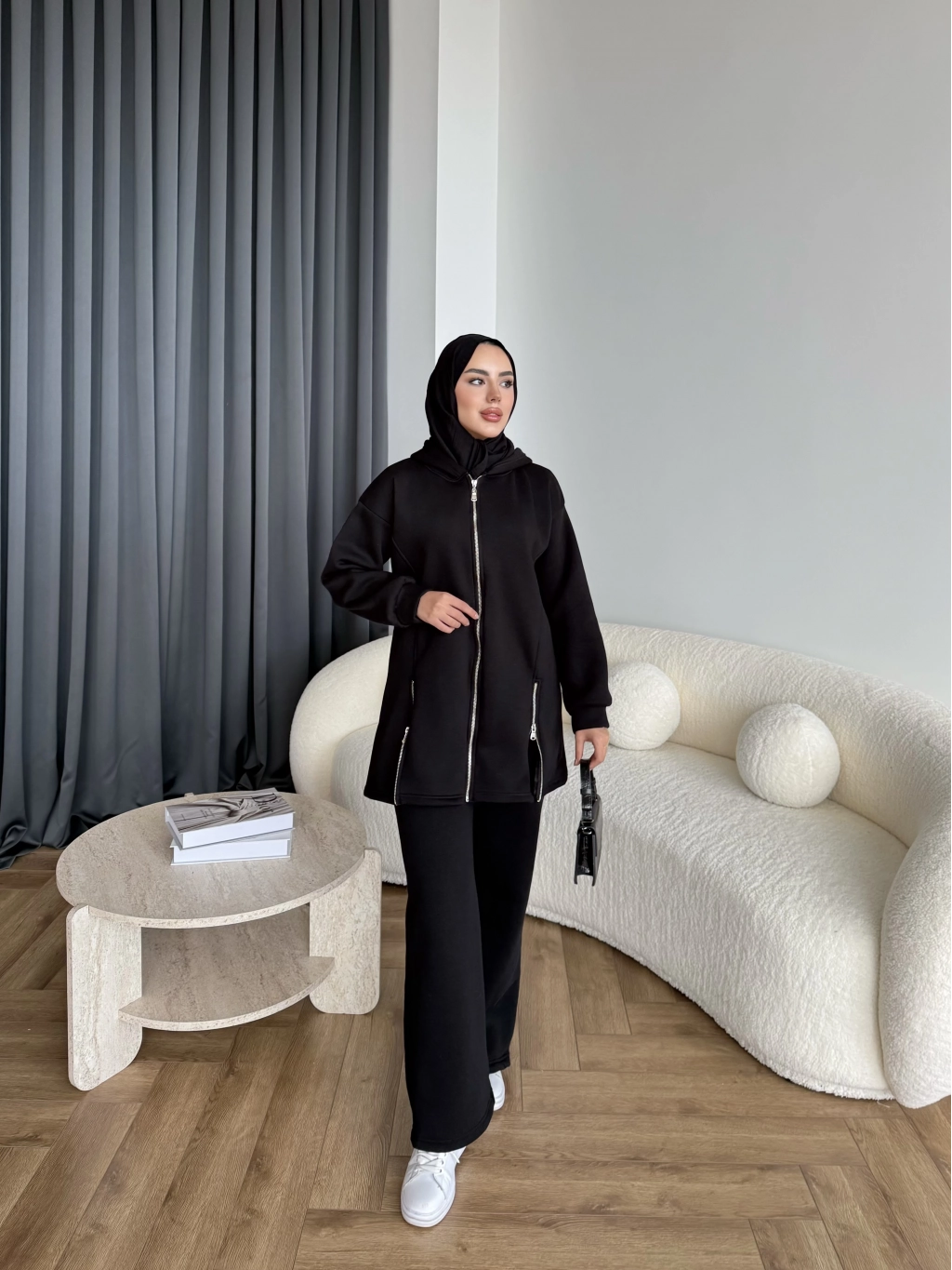 Yan Fermuarlı 3 İplik Takım - Siyah