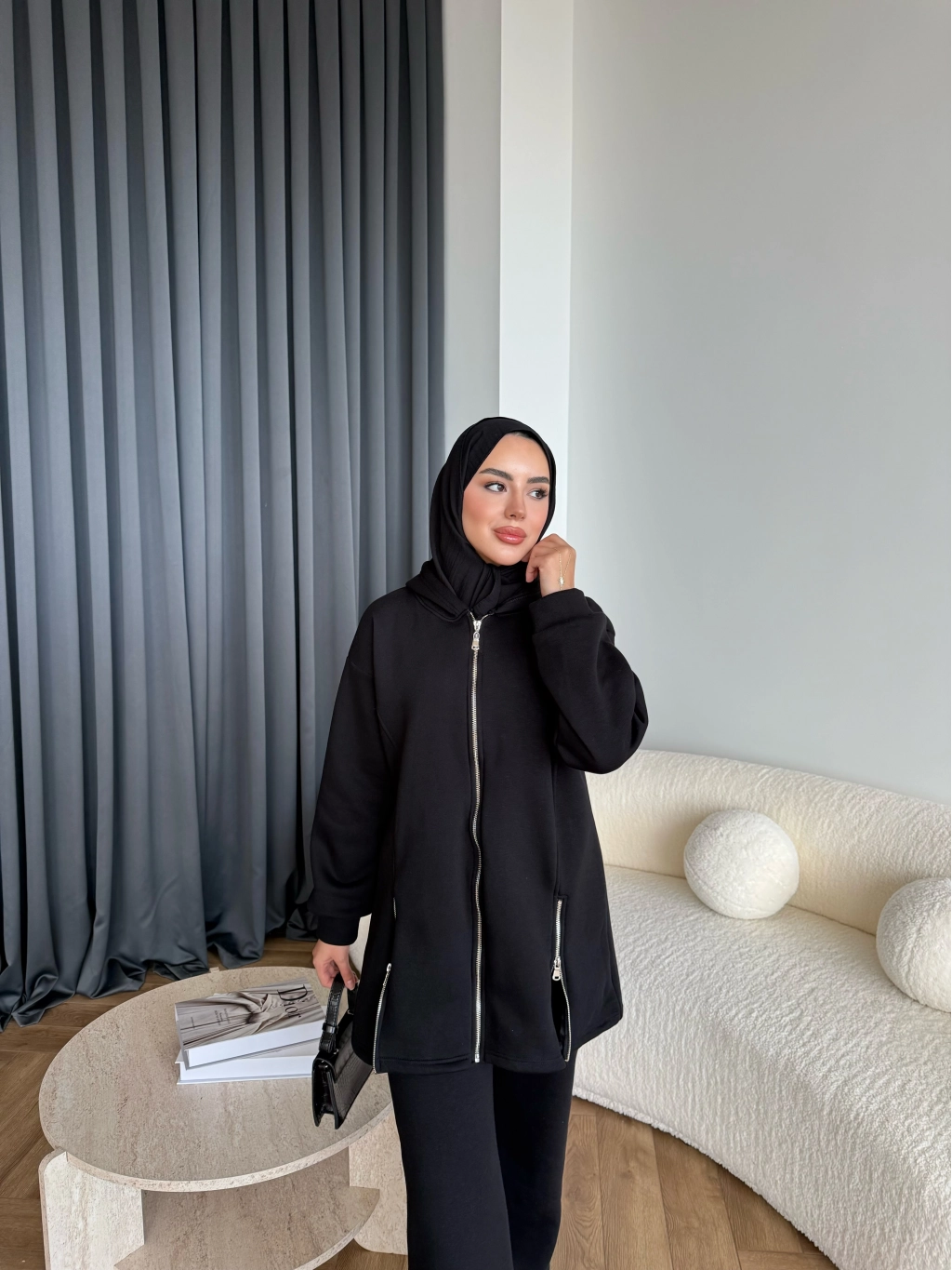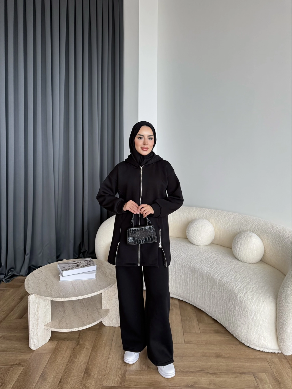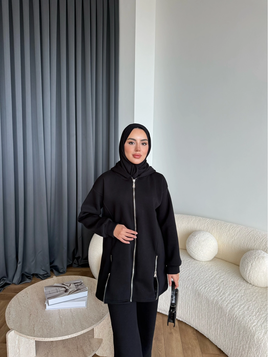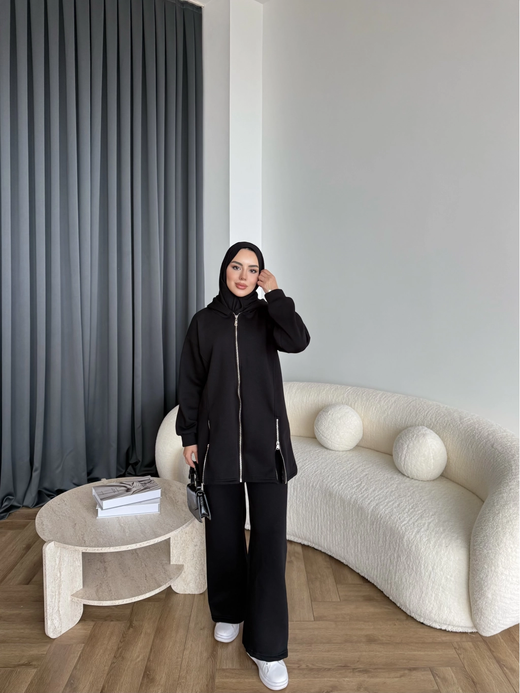 Yan Fermuarlı 3 İplik Takım - Siyah