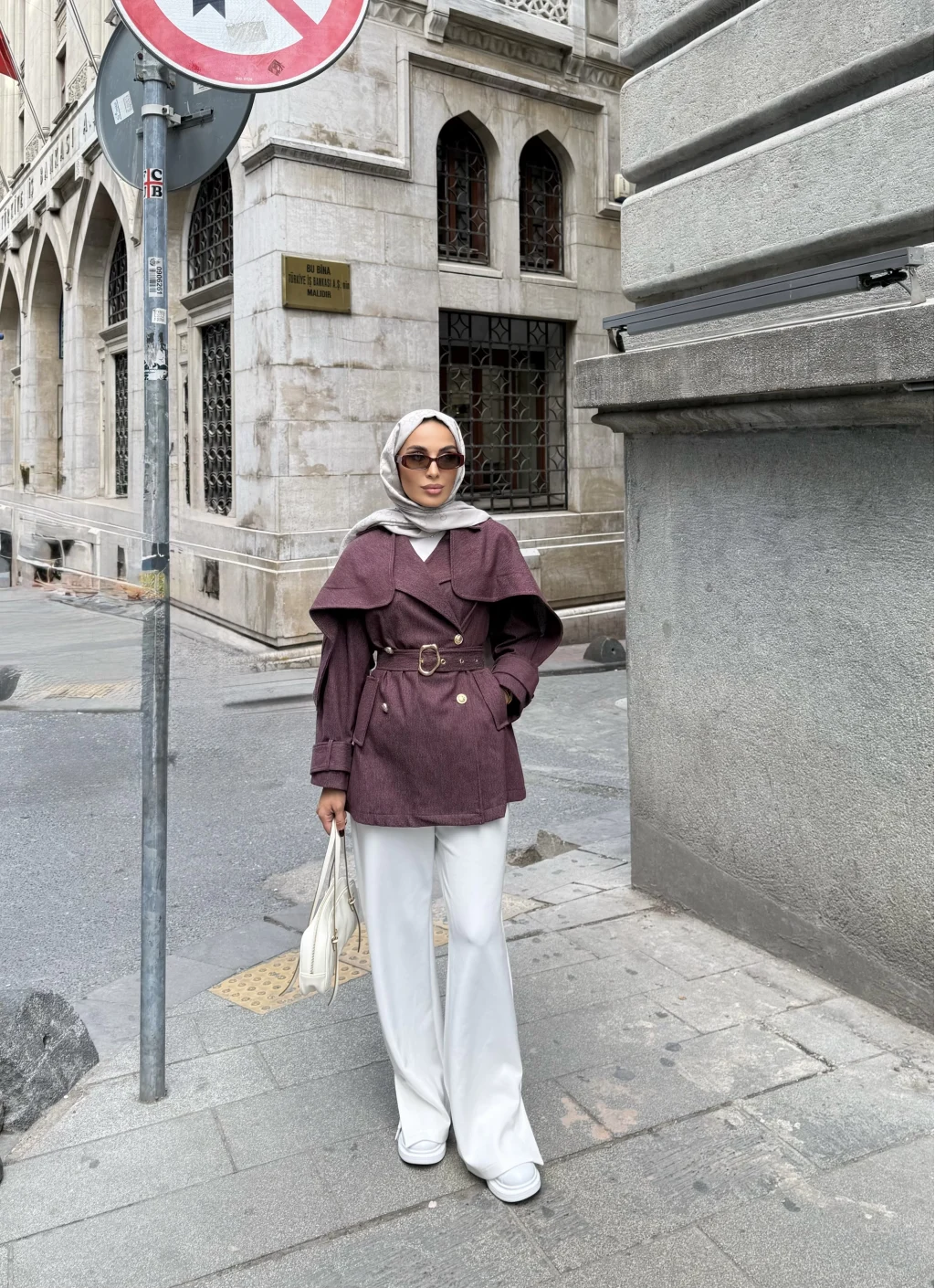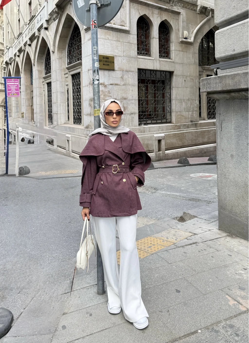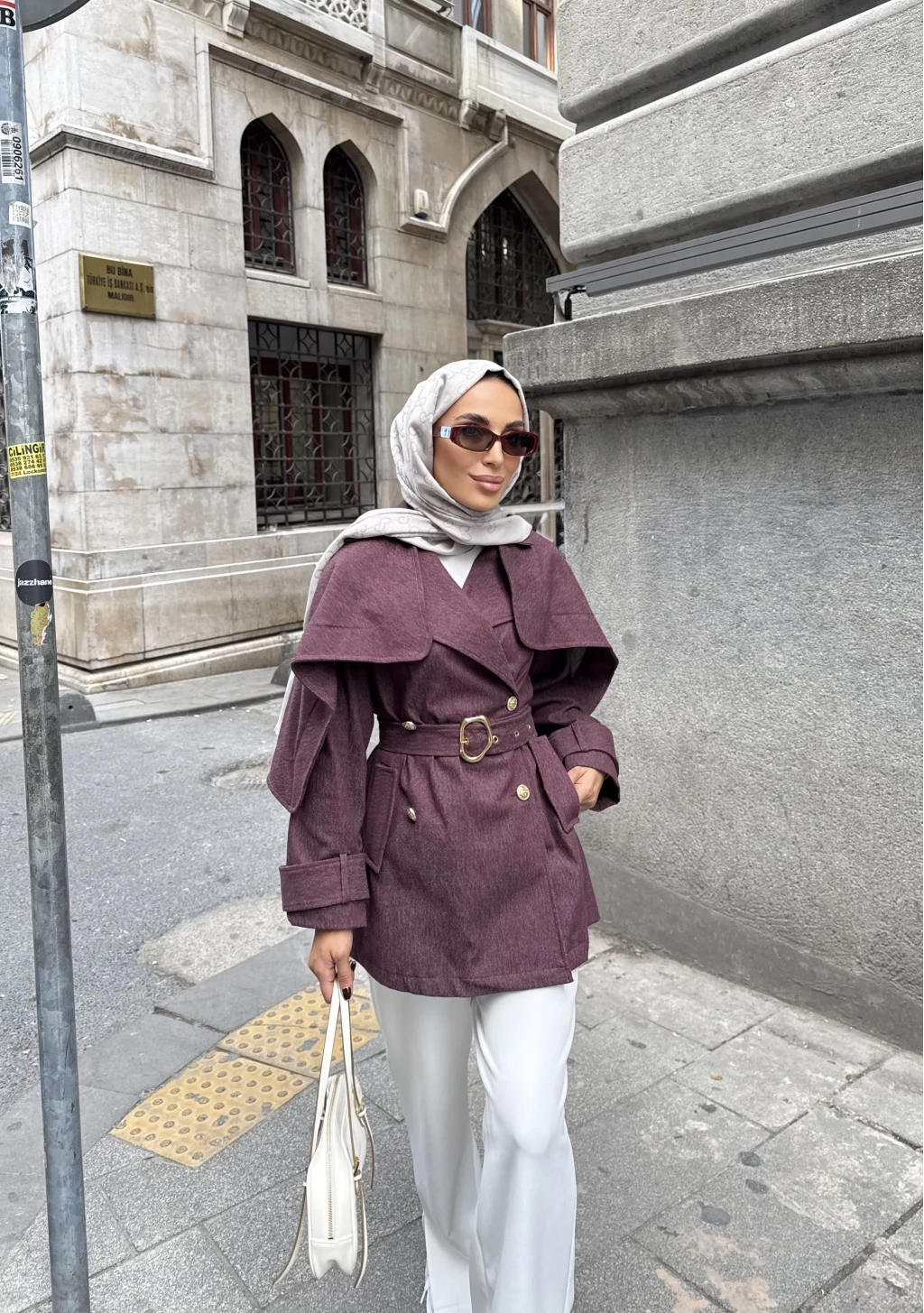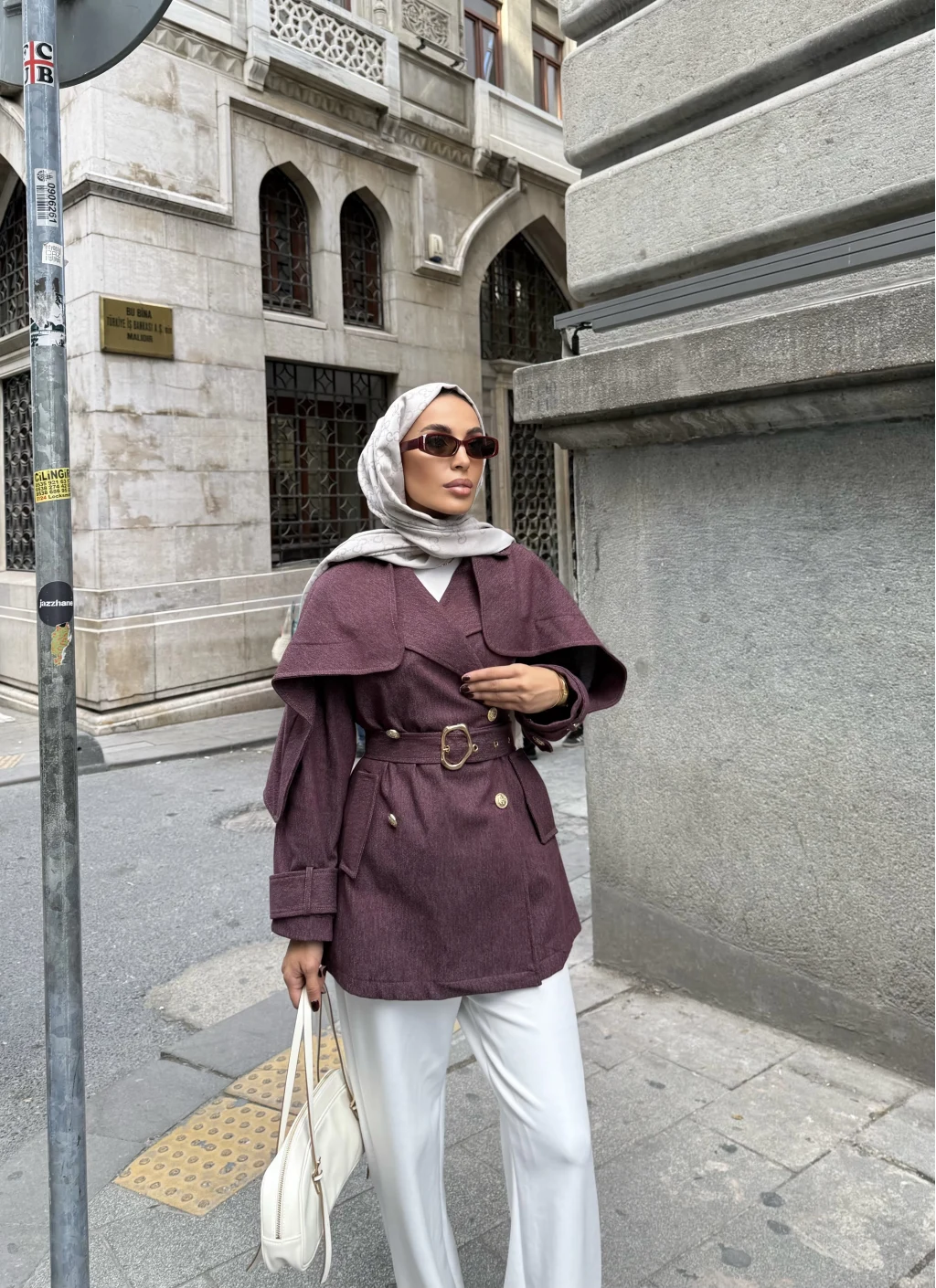 Yarasa Kollu Kruvaze Lupin Kot Ceket - Bordo