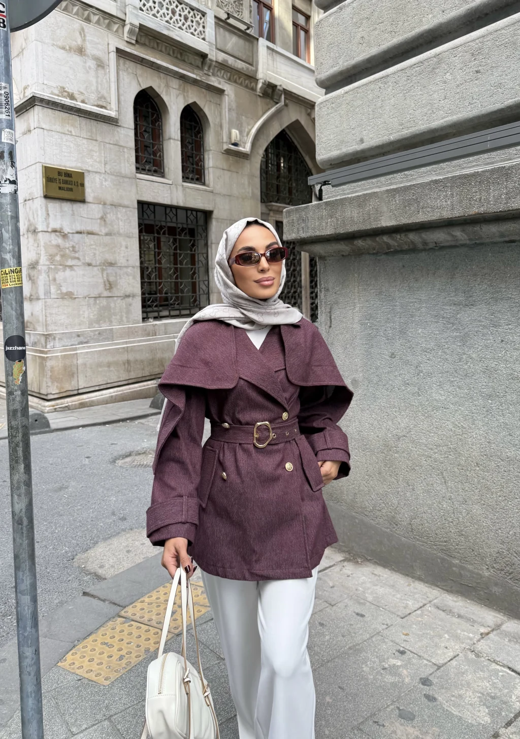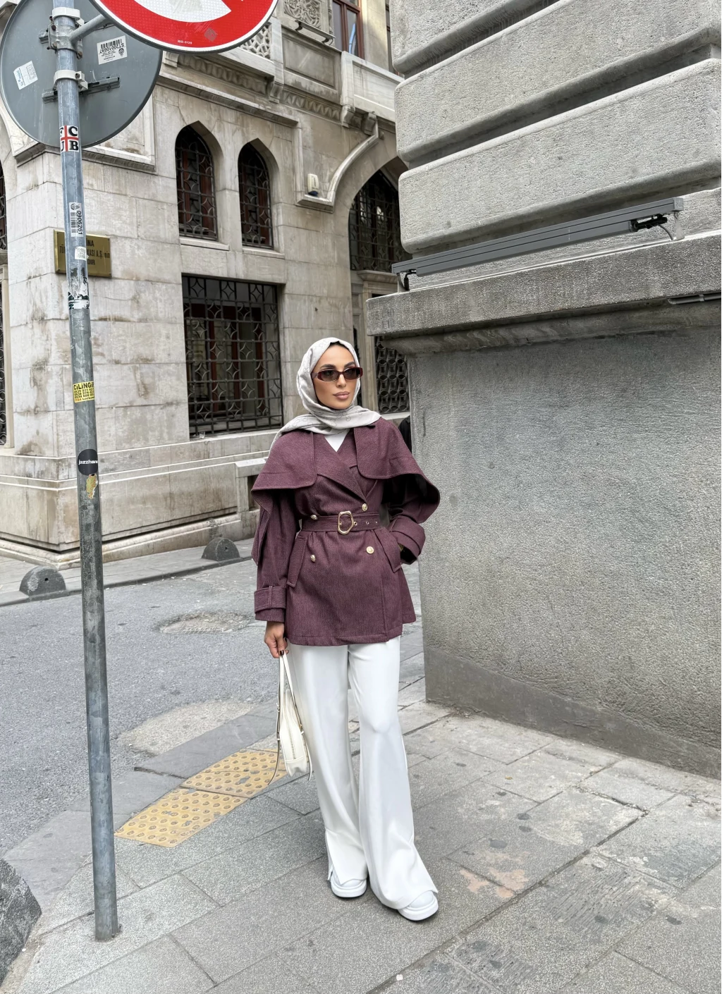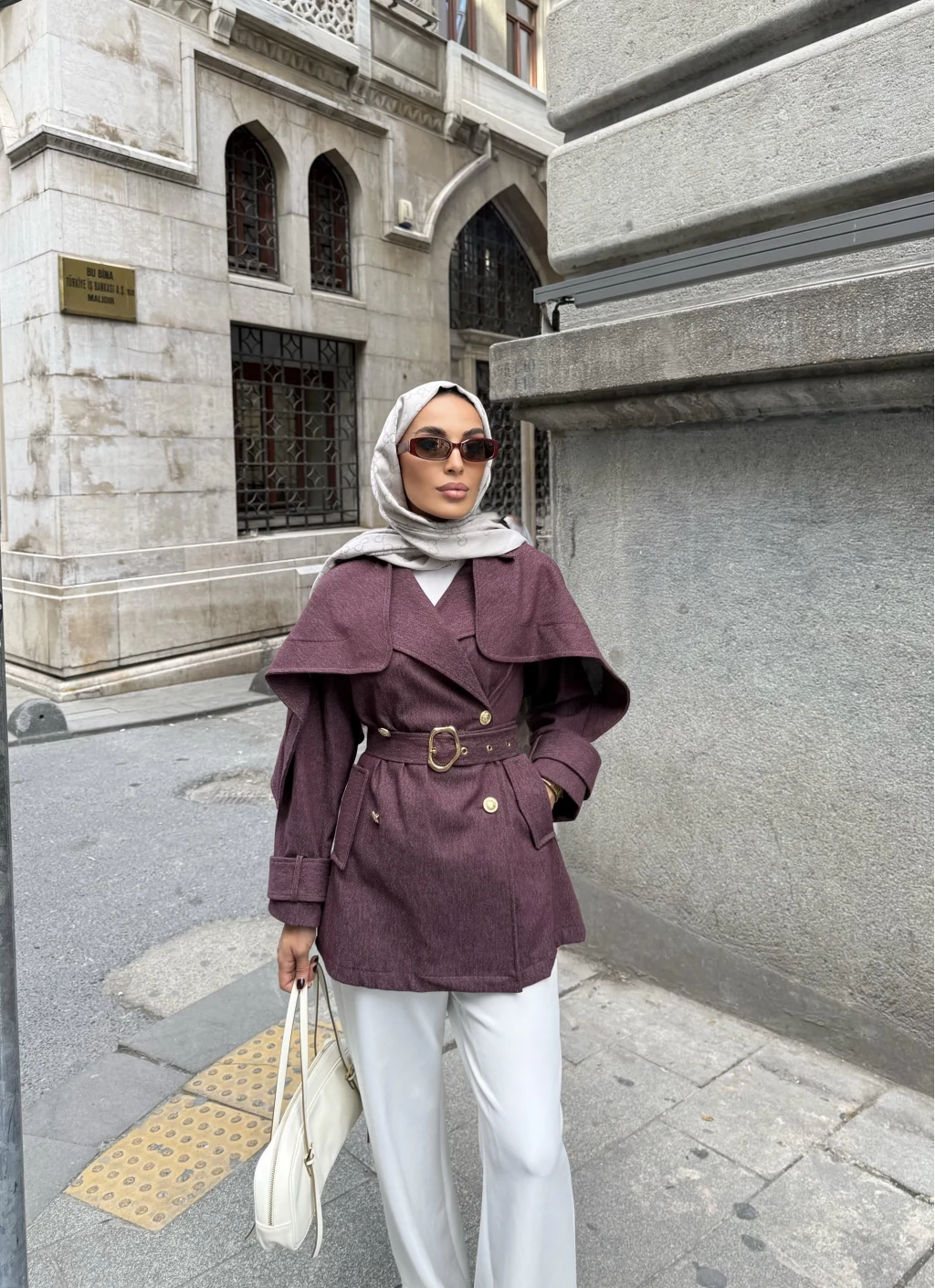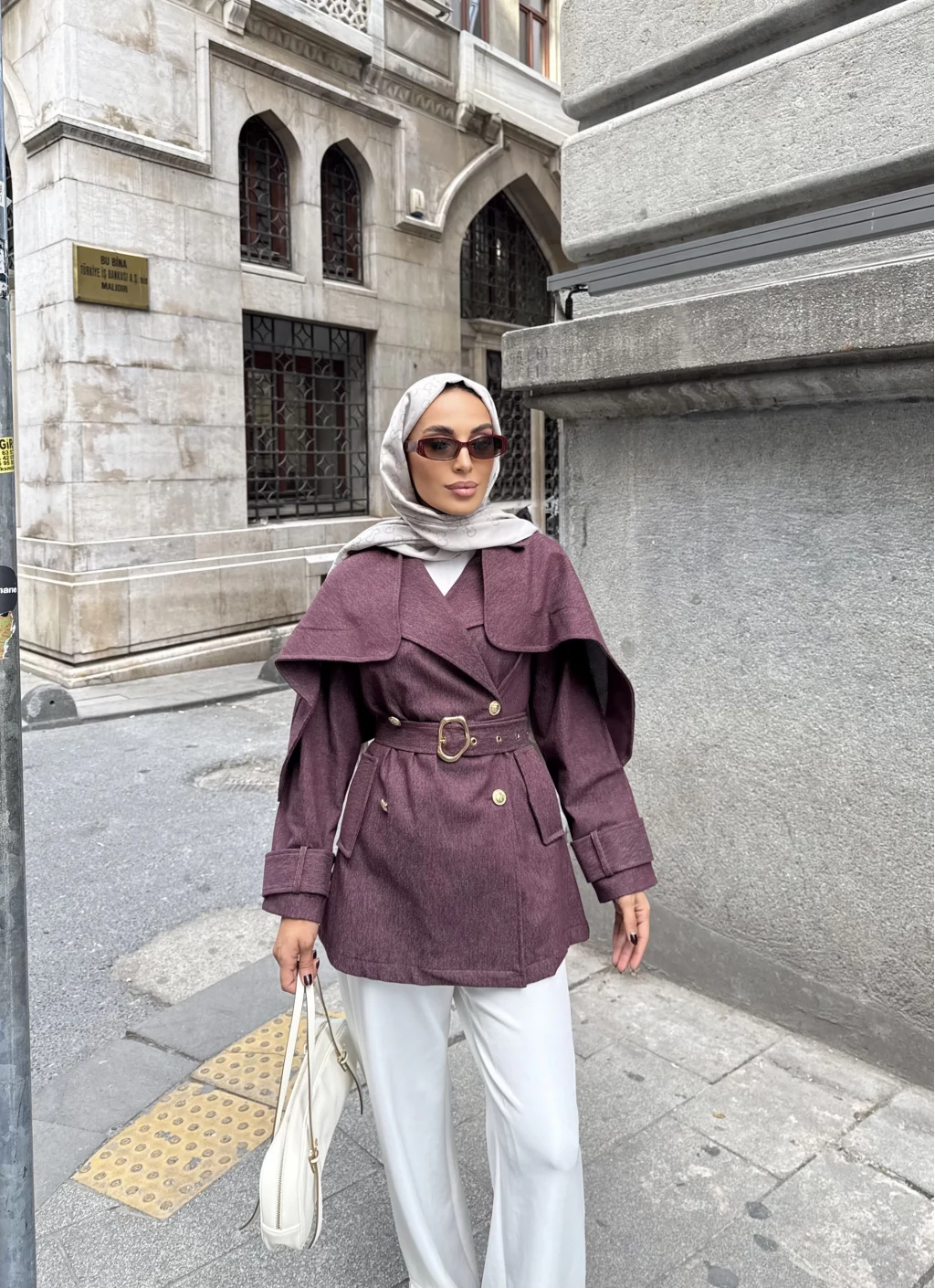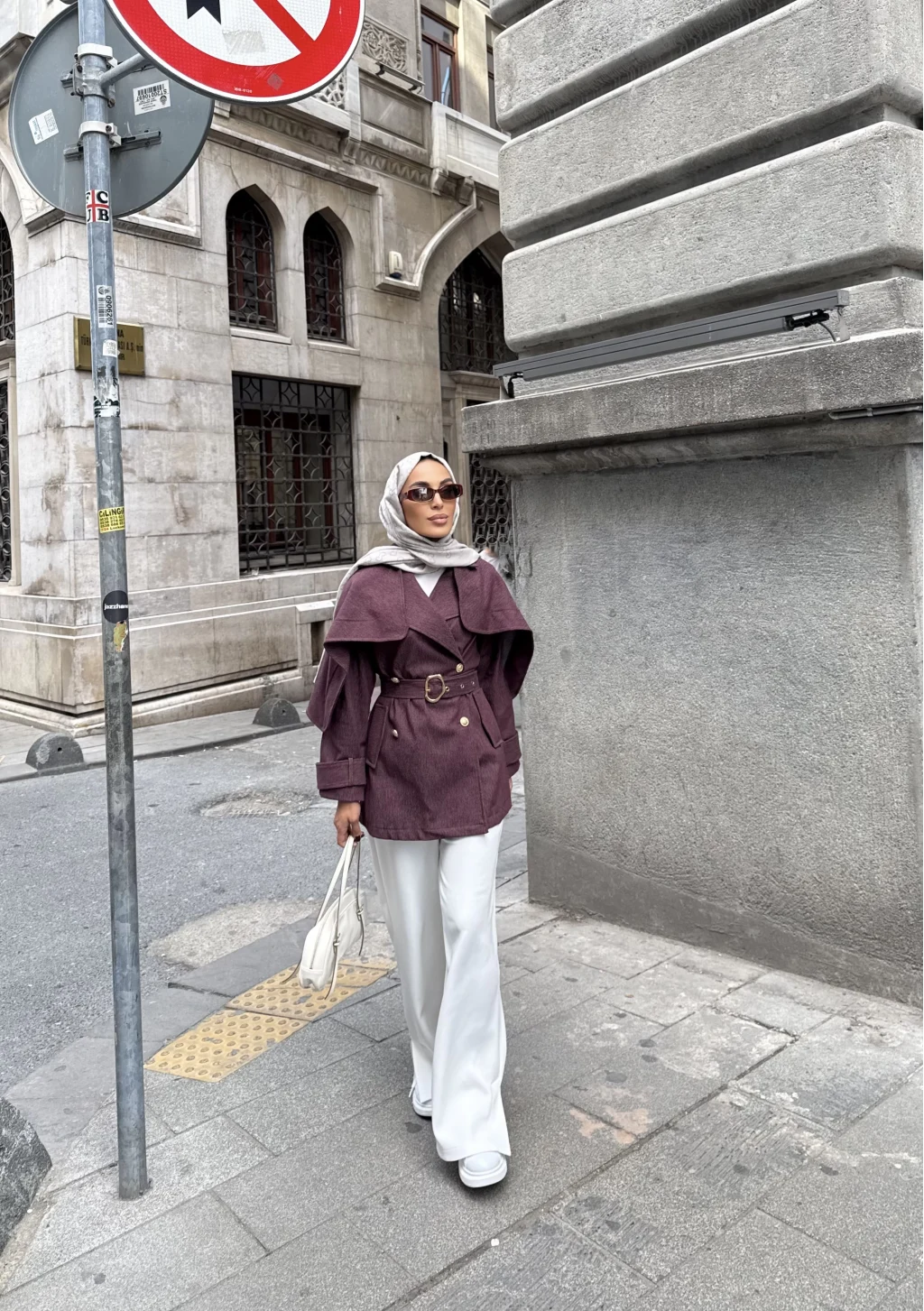 Yarasa Kollu Kruvaze Lupin Kot Ceket - Bordo