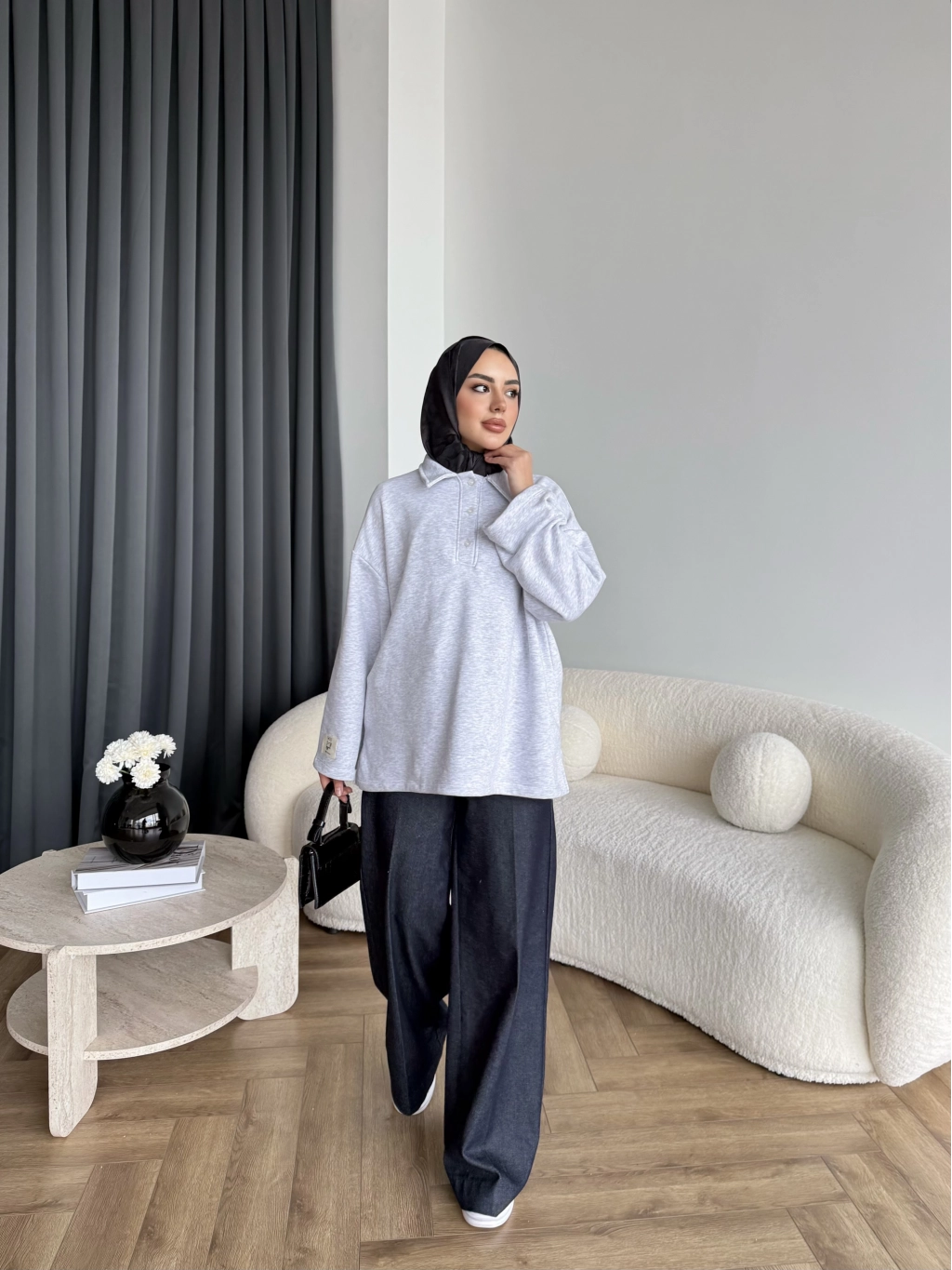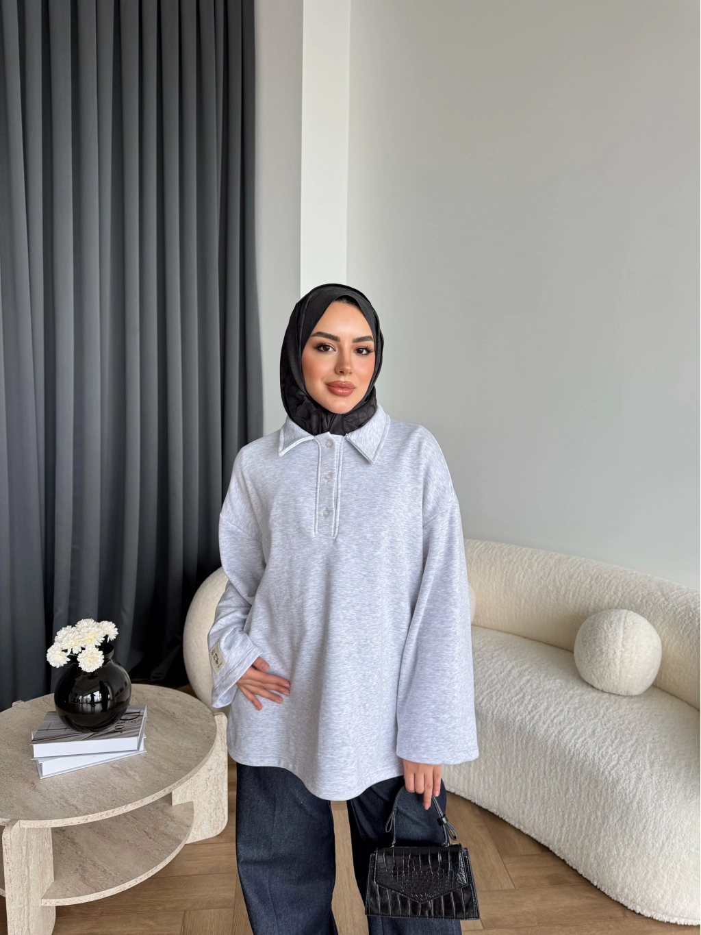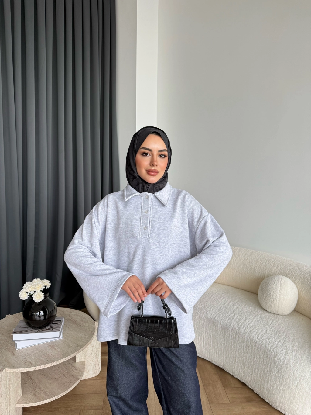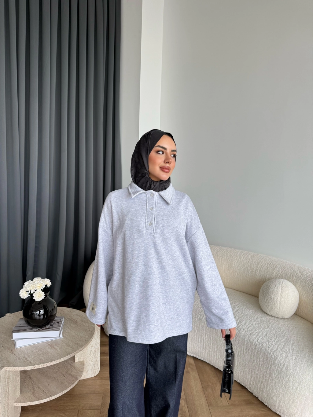 Yds - Petra Düğmeli Sweatshırt - Gri