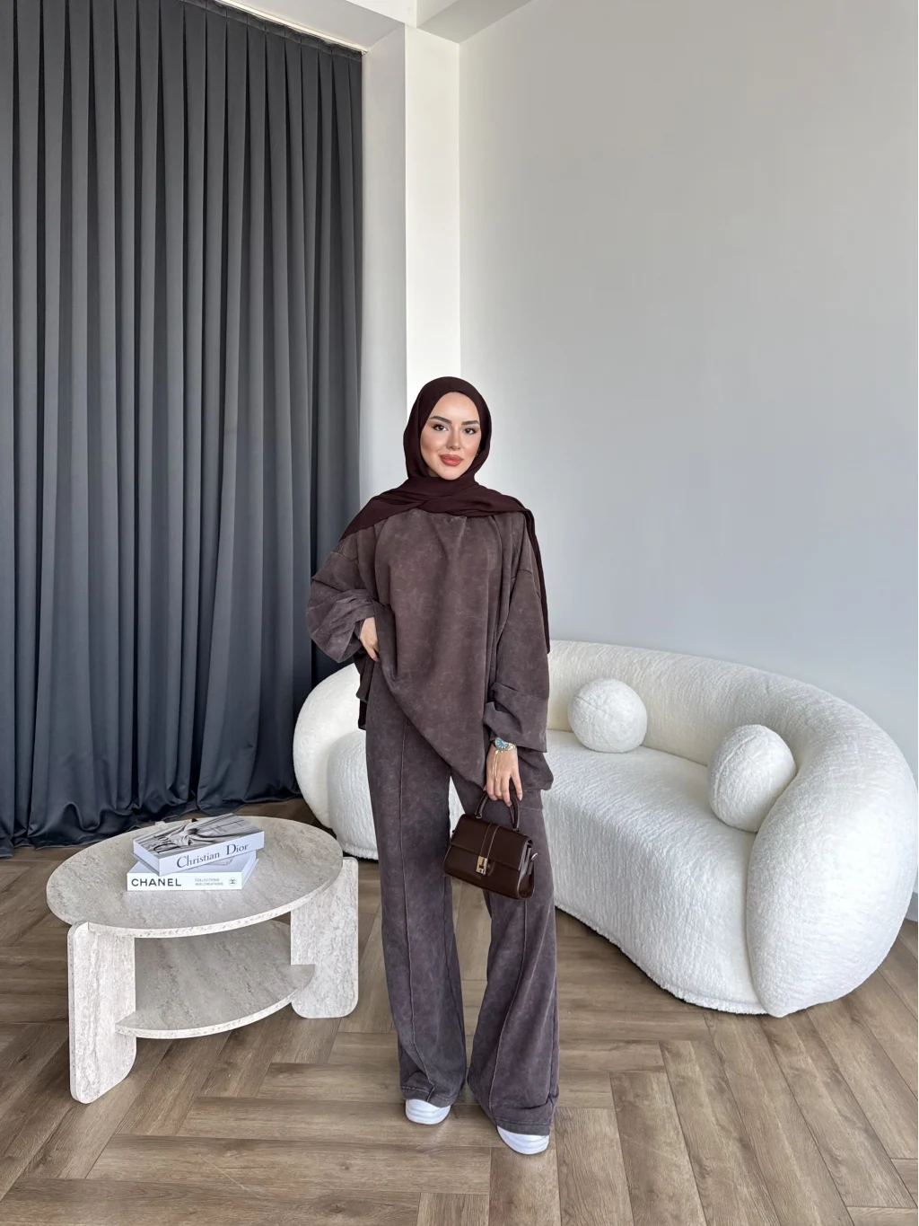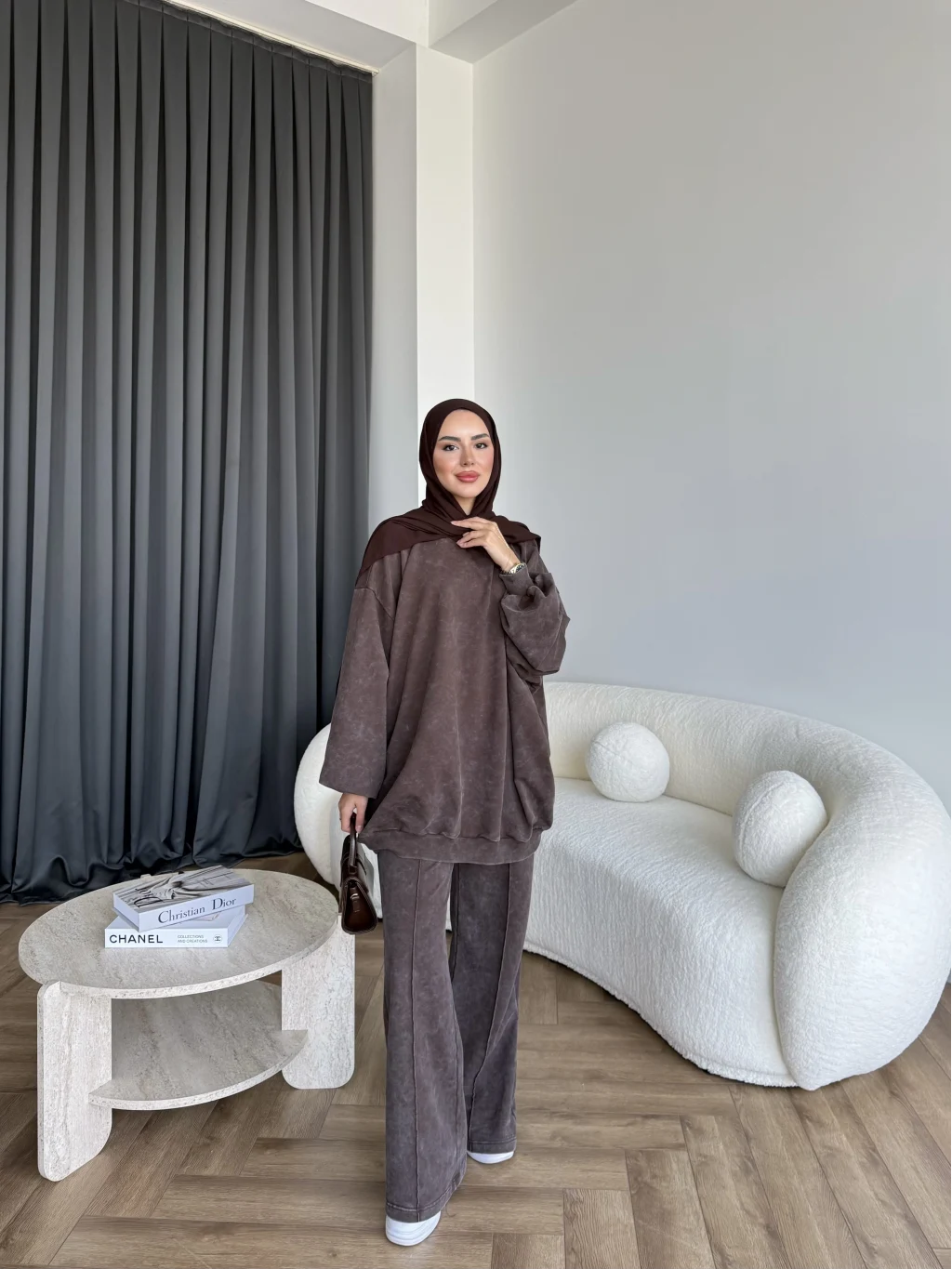 Gollan Fermuarlı Scuba Takım - Acı Kahve