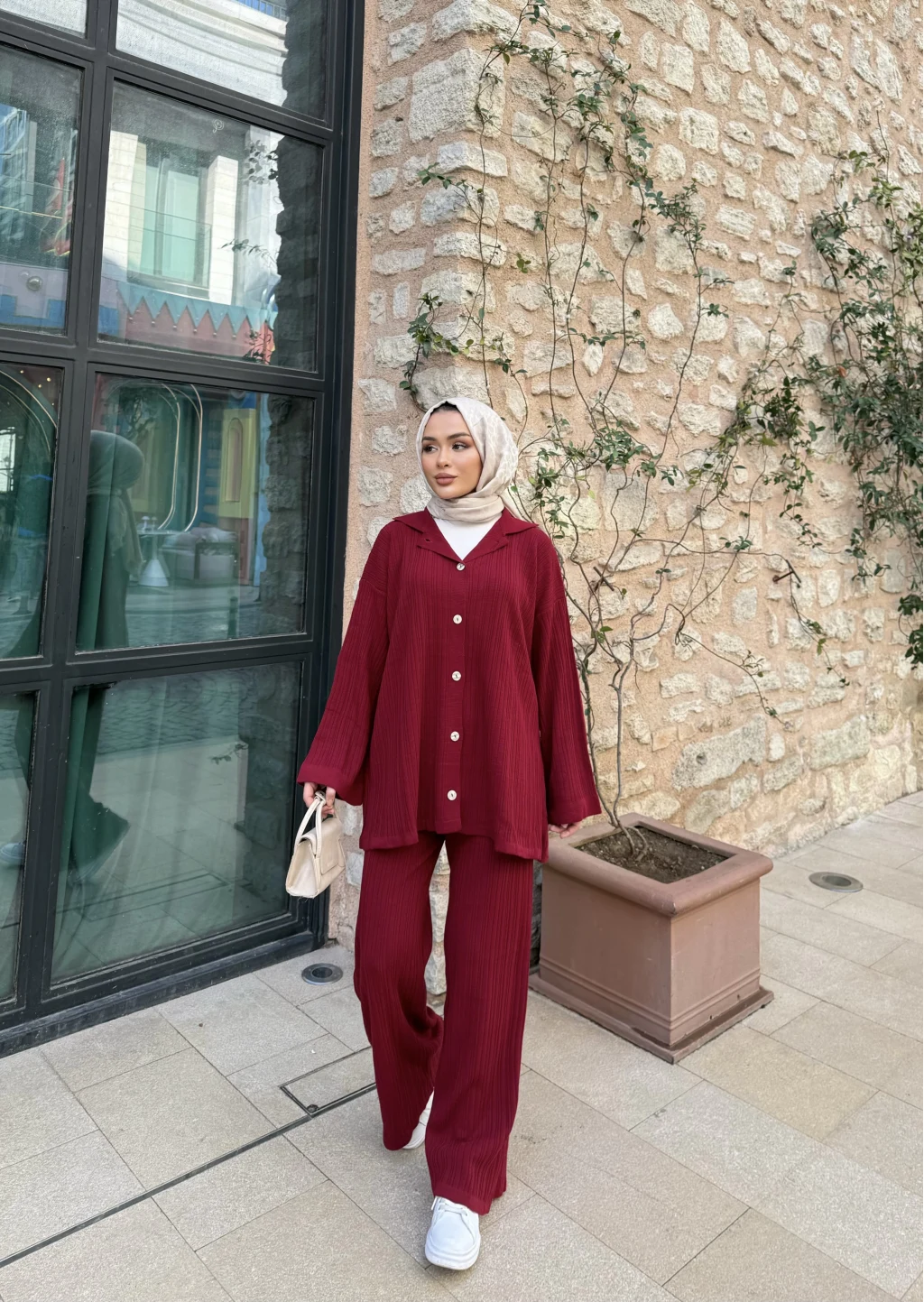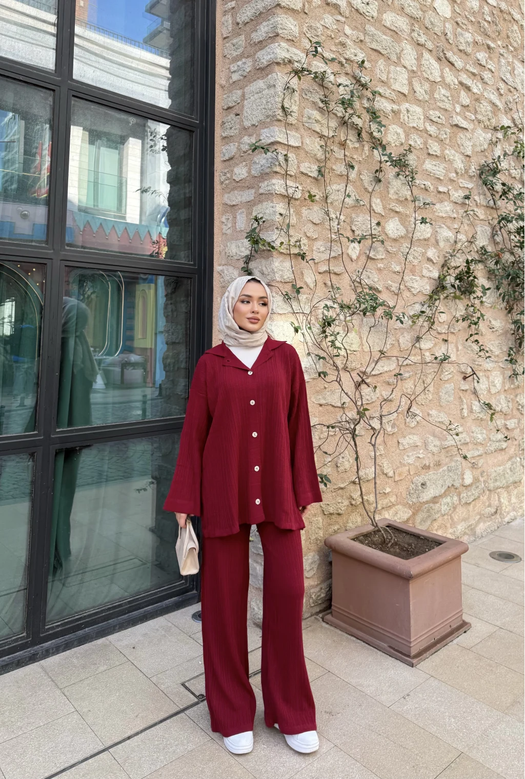 Polo Yaka Örgü Triko Takım - Acı Kahve