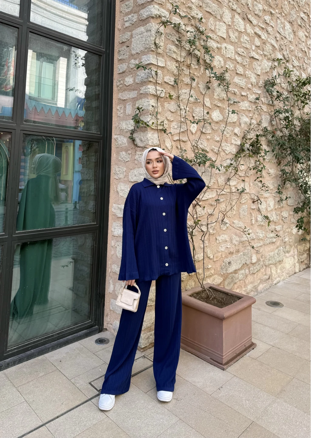 Zeyn Düğmeli Triko Takım - Lacivert