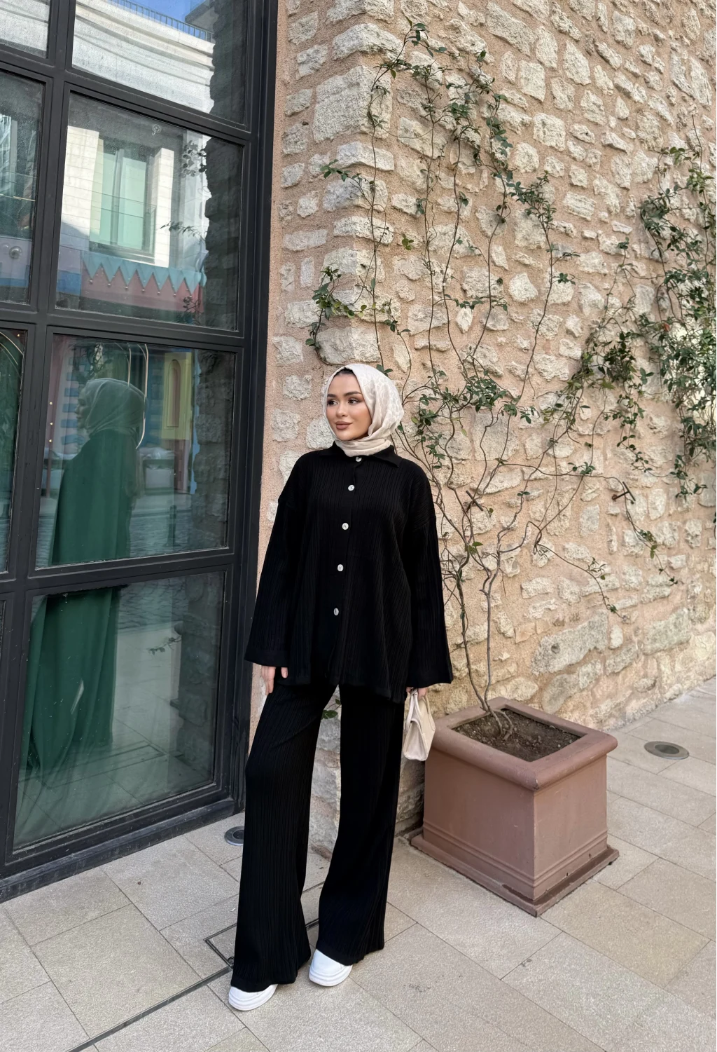 Polo Yaka Örgü Triko Takım - Acı Kahve