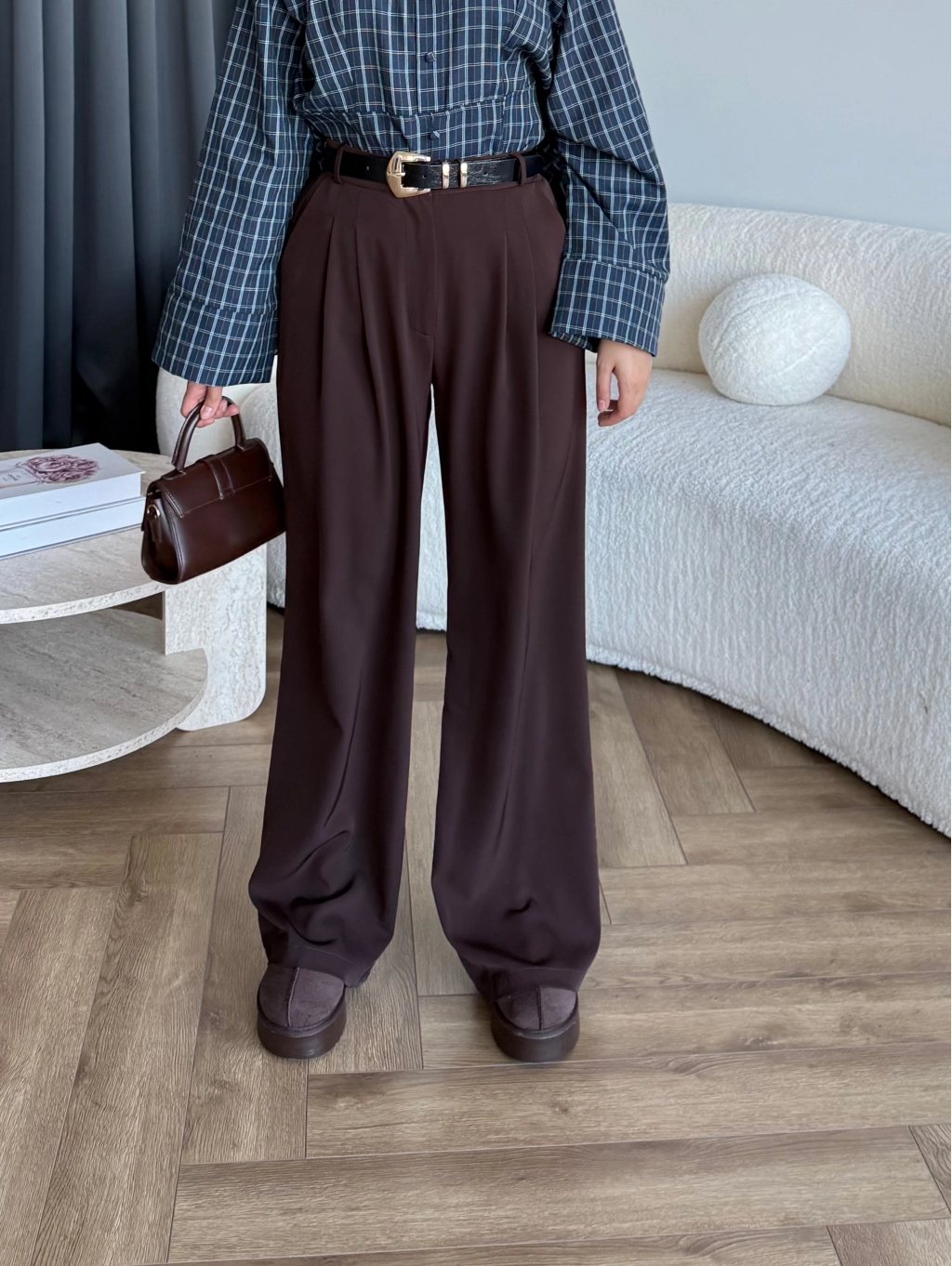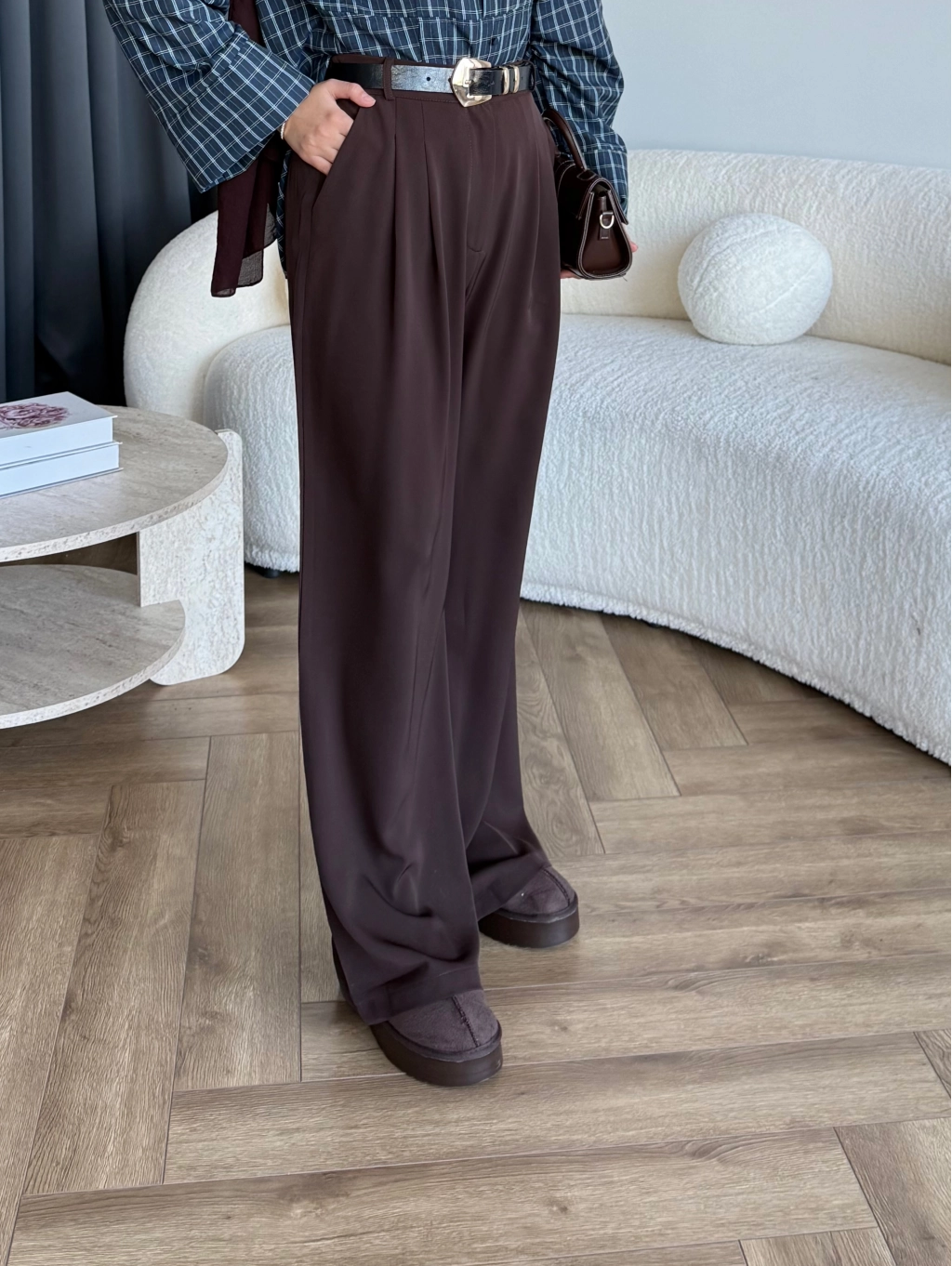 Zeyns Kumaş Palazzo Pantolon - Acı Kahve